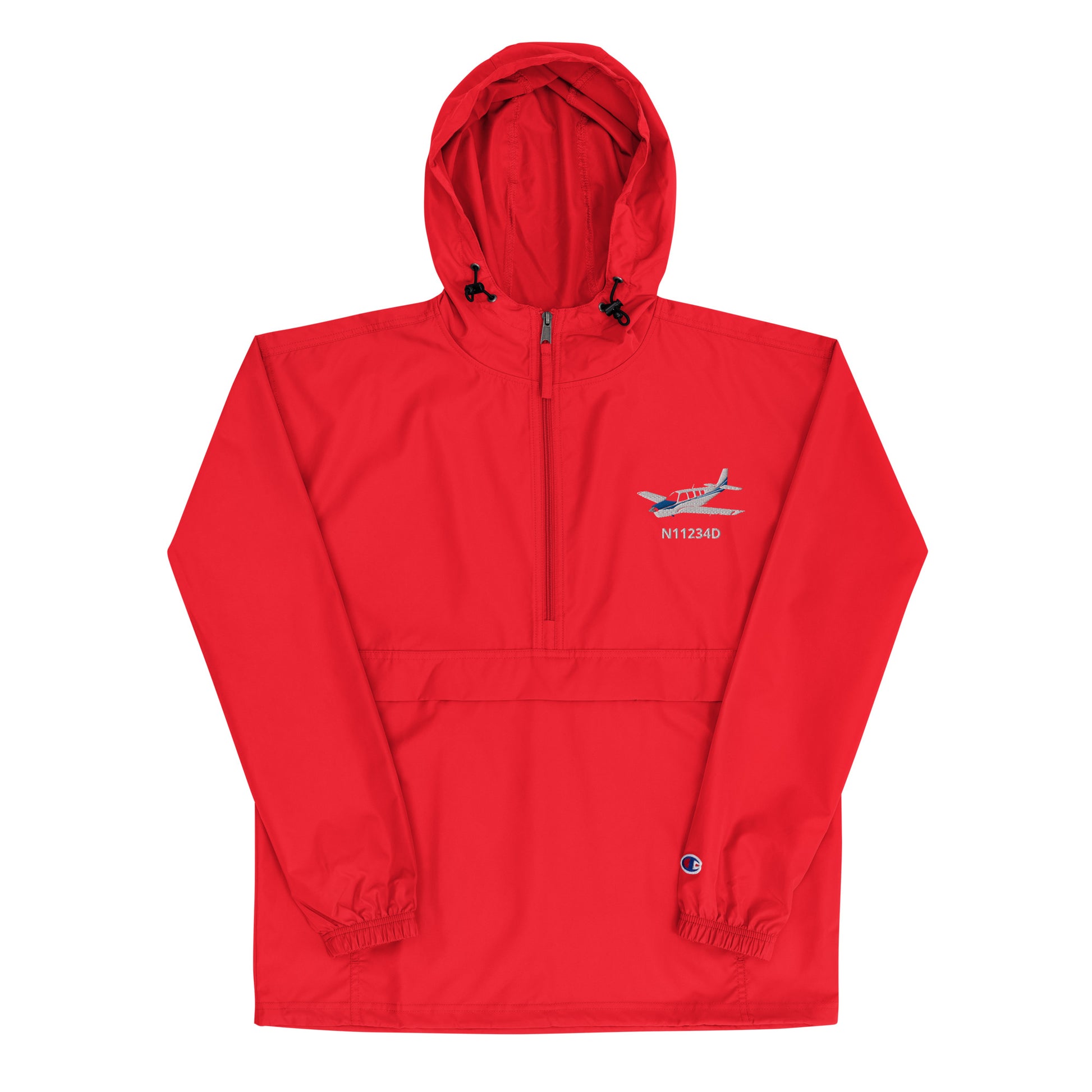 BONANZA A36 White- Blue CUSTOM N Number Aviation Rain weather proof Embroidered Champion Packable Zip Jacket.