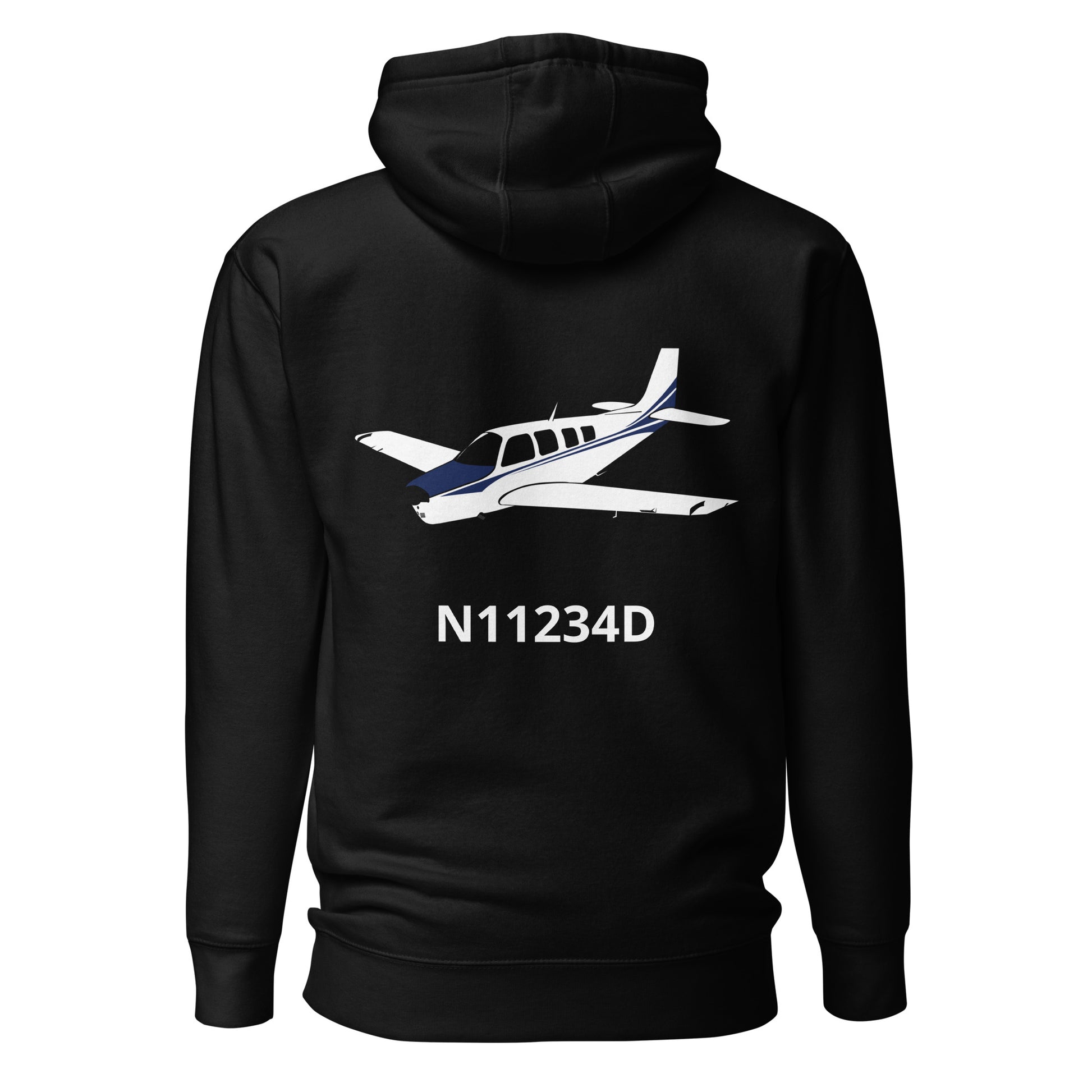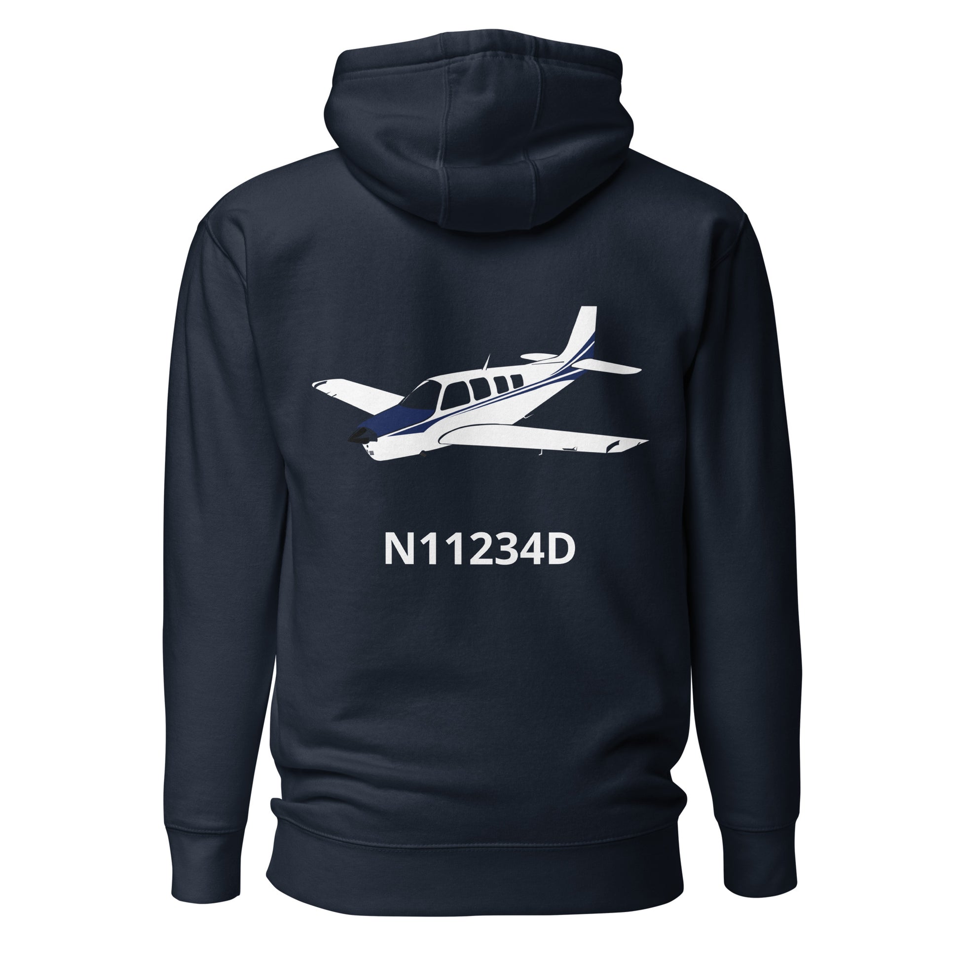 BONANZA A36 White - Blue CUSTOM N NUMBER Printed Cozy Unisex Aviation Hoodie.