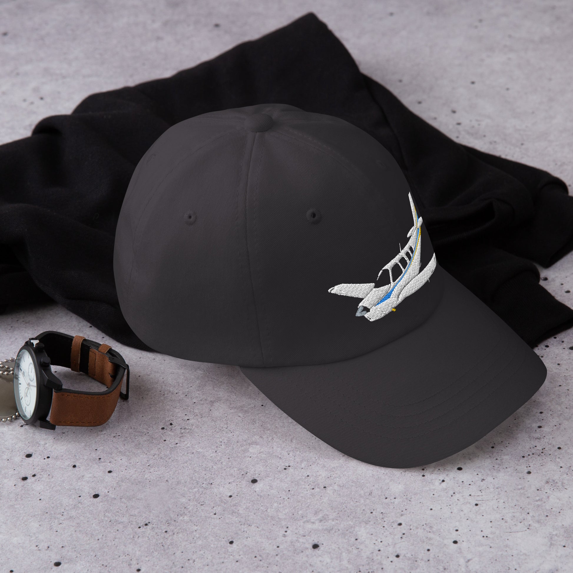 BONANZA A36 white- blue stripe paint scheme CUSTOM N Number Embroidered Classic Cotton Twill Aviation Hat.