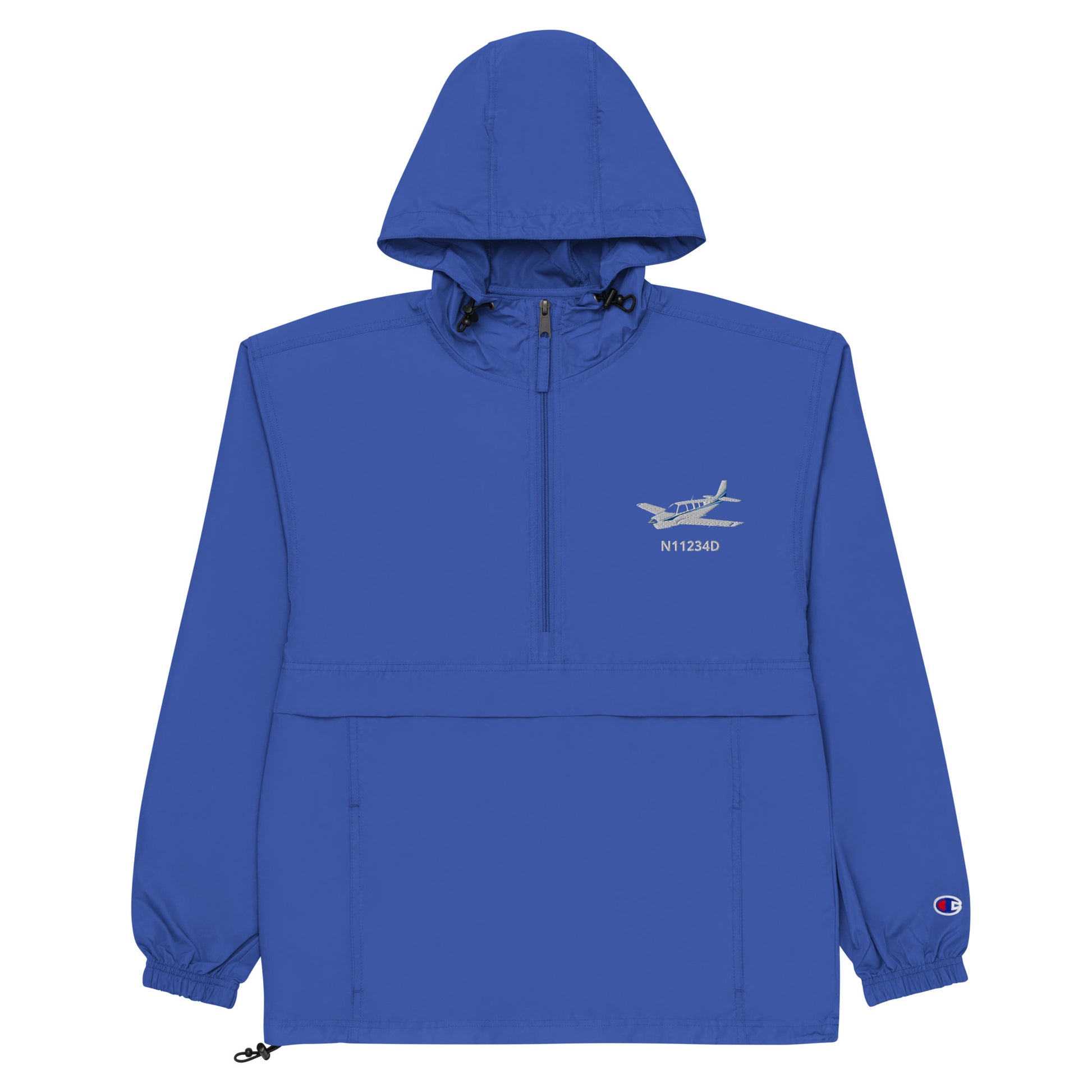 BONANZA A36 White with Stripe CUSTOM N Number Aviation Rain weather proof Embroidered Champion Packable Zip Jacket