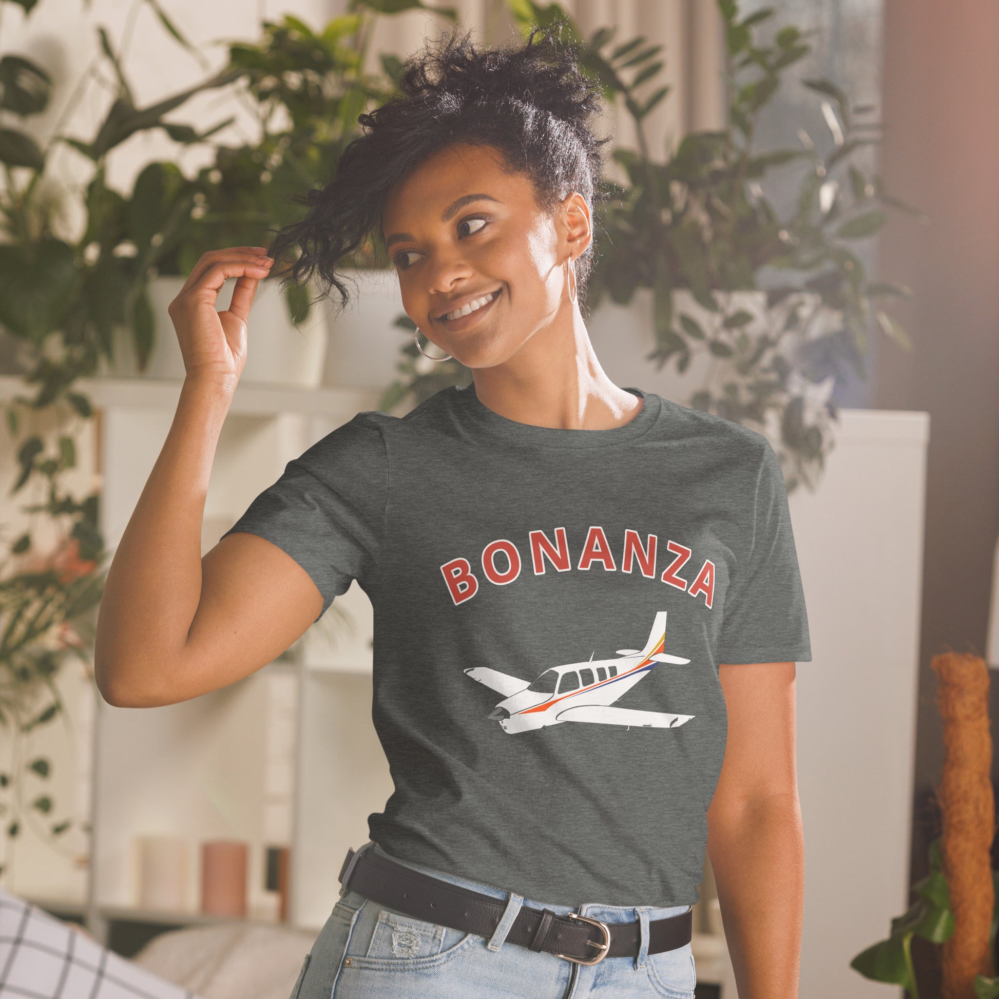 BONANZA A36 White with Stripe Graphic Short-Sleeve Unisex classic fit aviation T-Shirt.