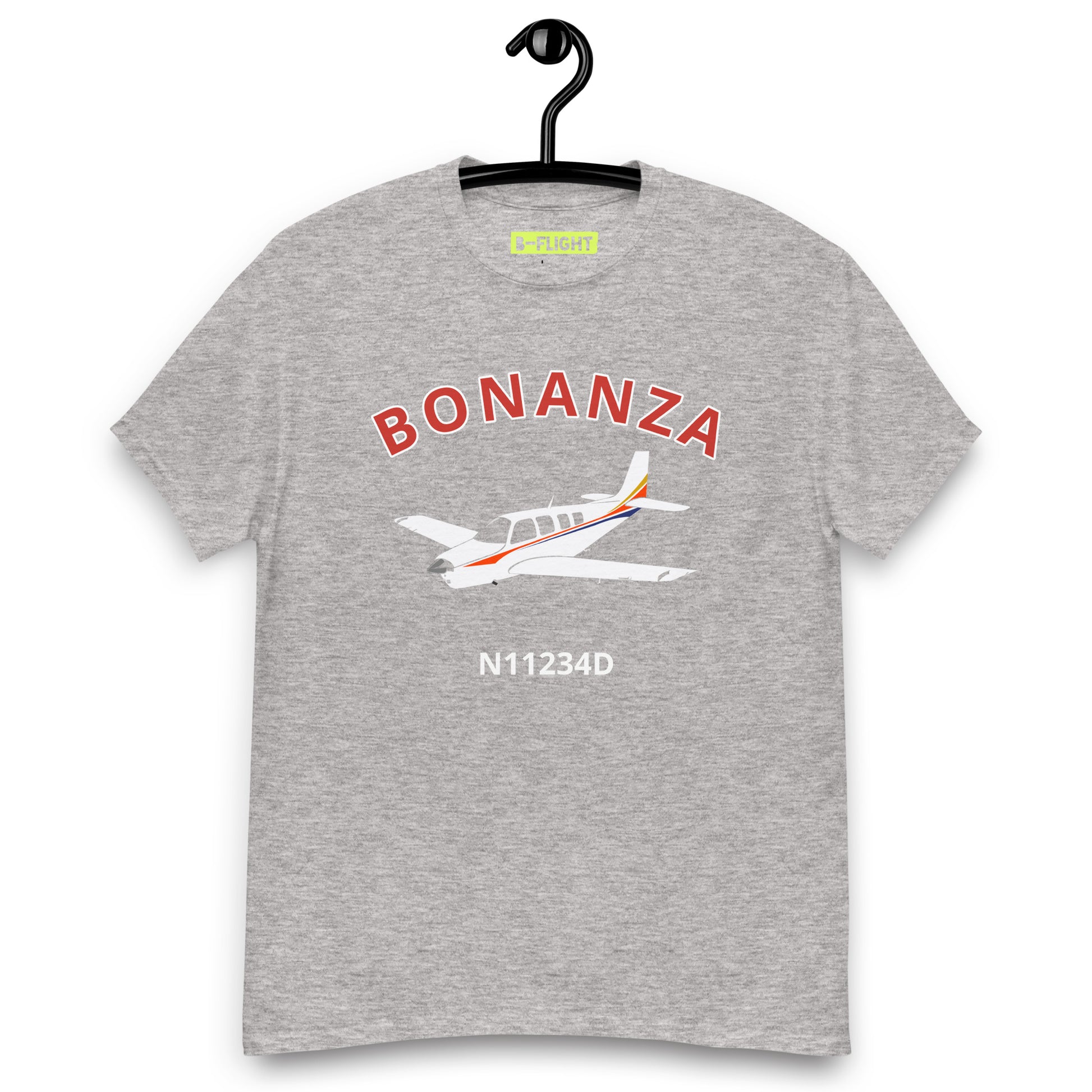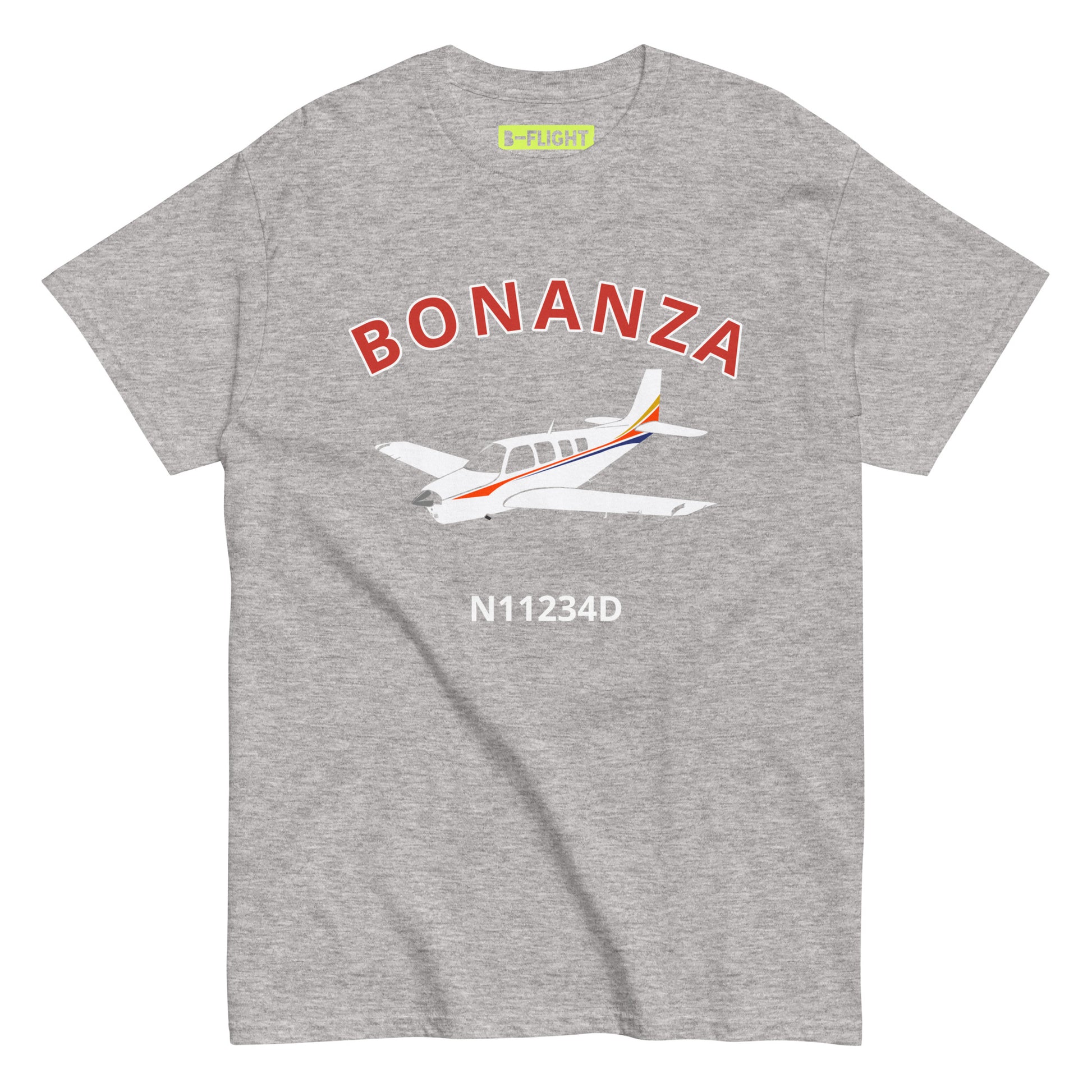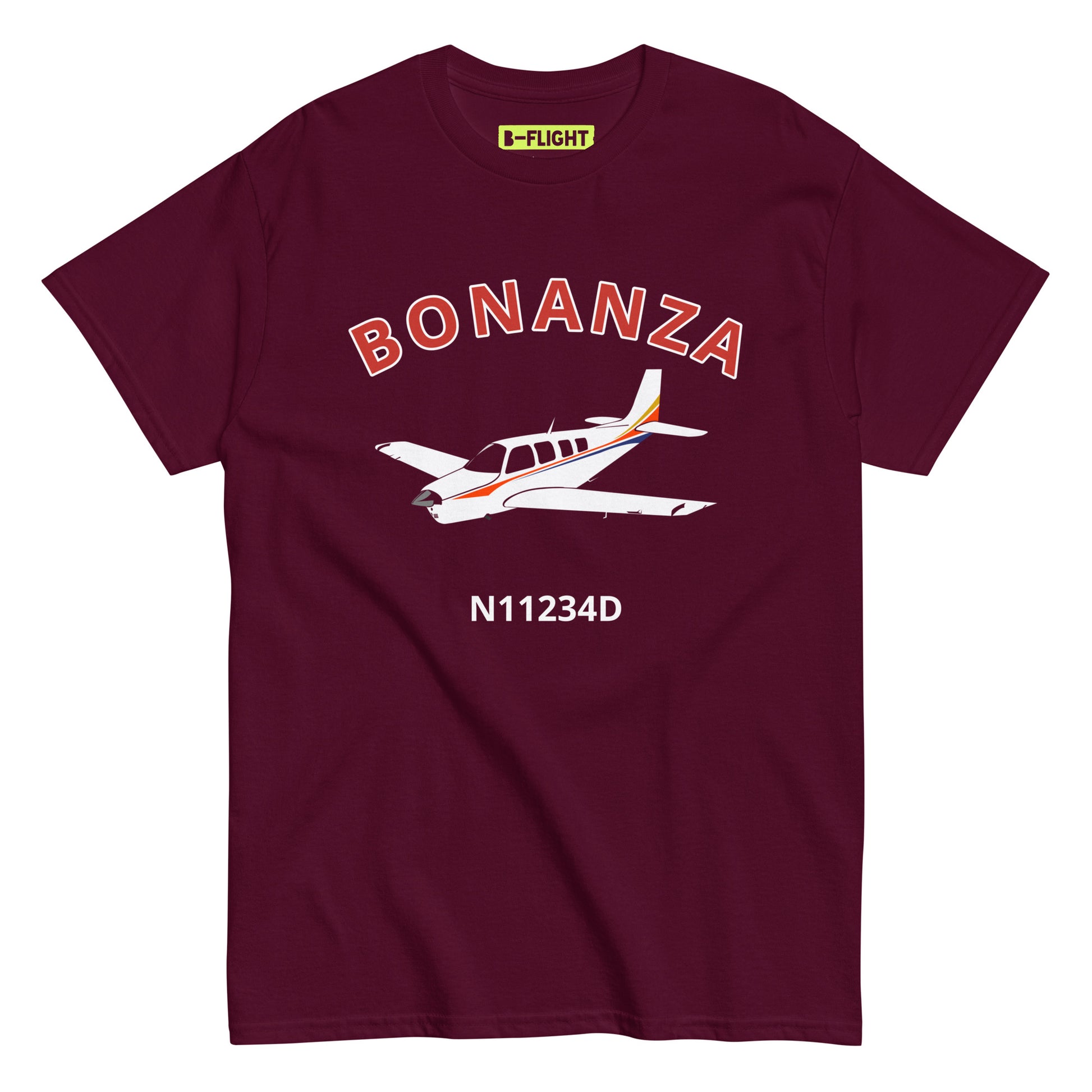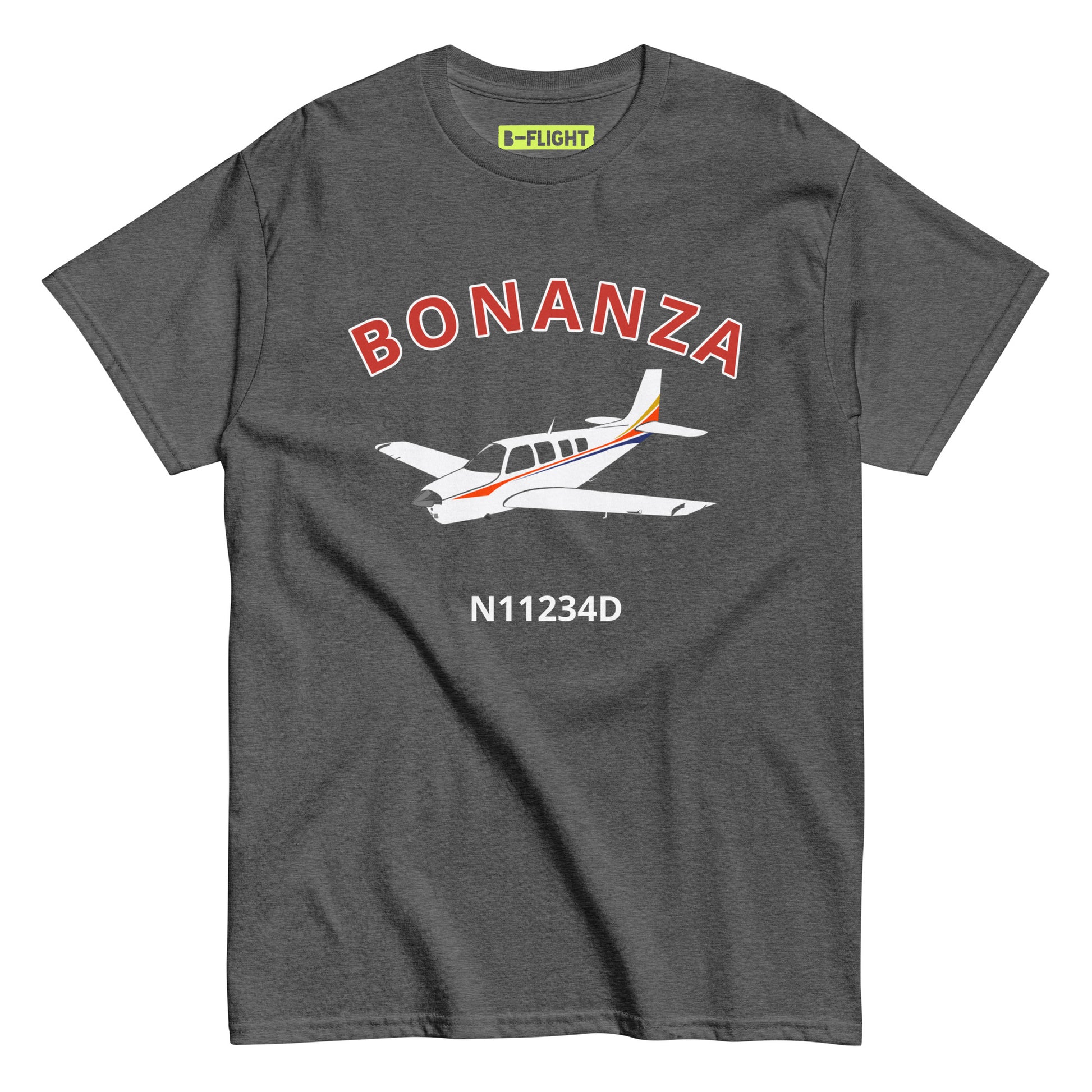 BONANZA A36 White with Stripes CUSTOM N NUMBER Graphic Short-Sleeve Unisex classic fit aviation T-Shirt.