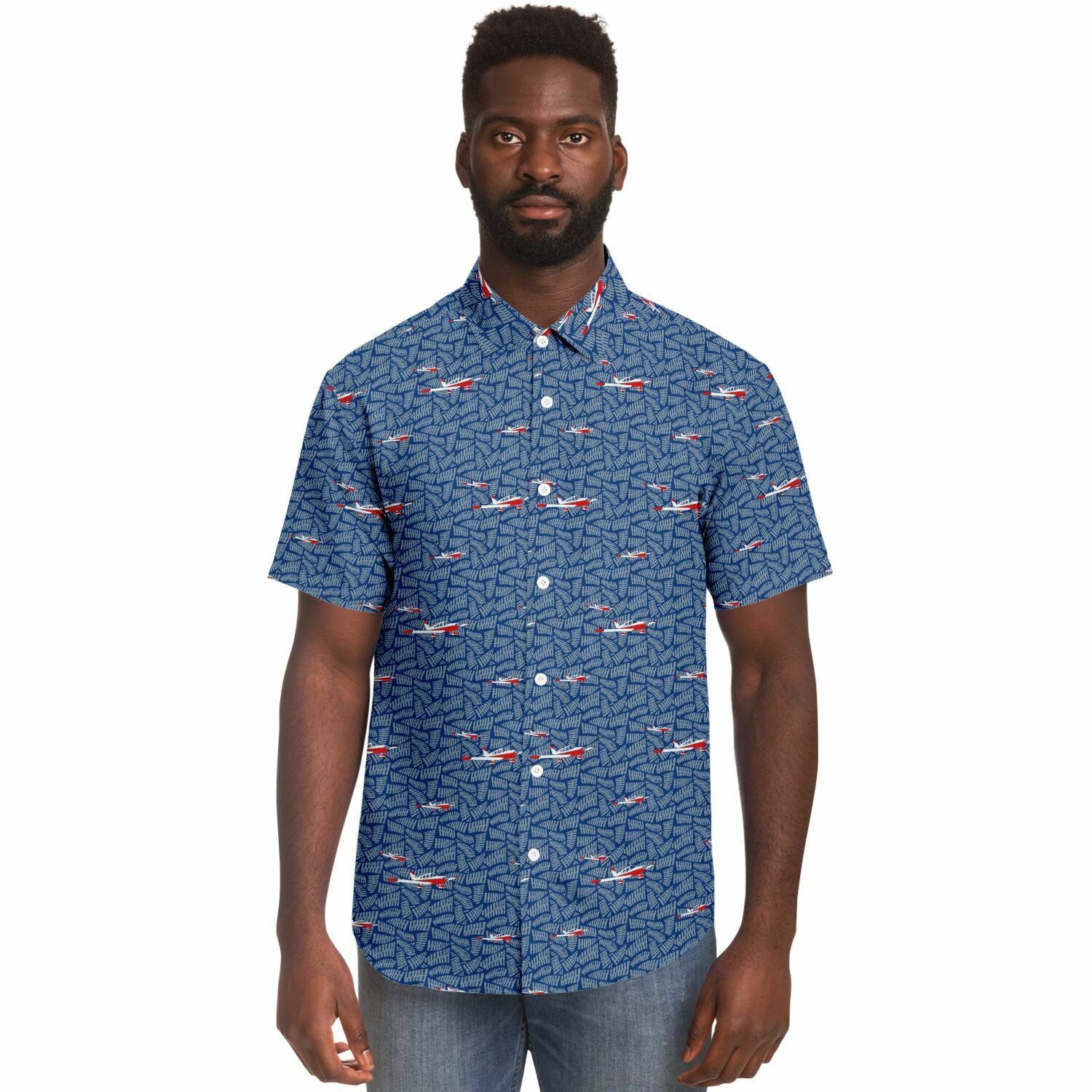 Button-down CHEROKEE aircraft printed Short Sleeve Button Down Shirt - Blue - poplin