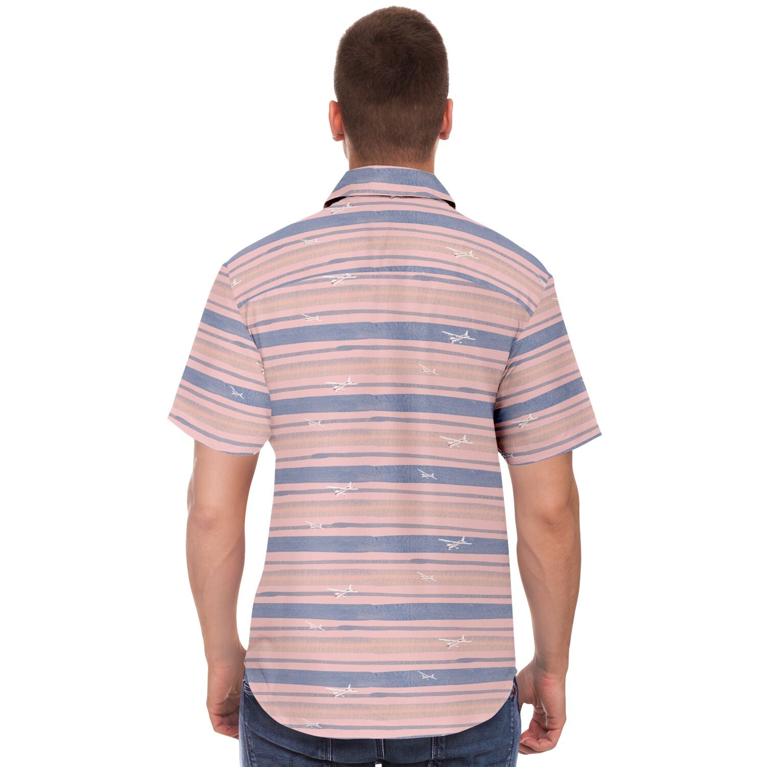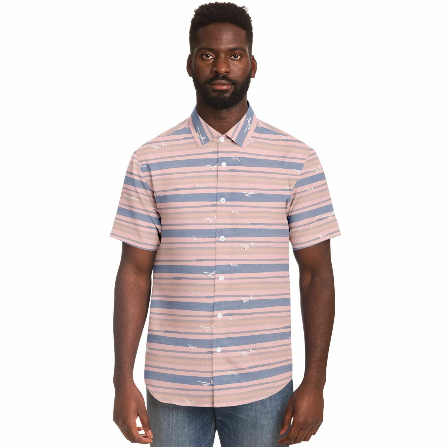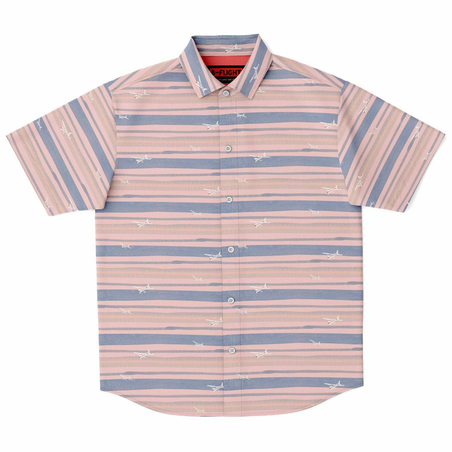 Be the coolest Cessna pilot around with this relaxed stripe and jazzy White-red trim Cessna 172 Skyhawk print. Deconstructed neutral horizontal stripe in pink, blue, and tan with a washed effect and eye catching Cessna 172 Skyhawk white aircraft with red trim. It comes in a regular width and spread collar. Can be worn tucked or untucked.