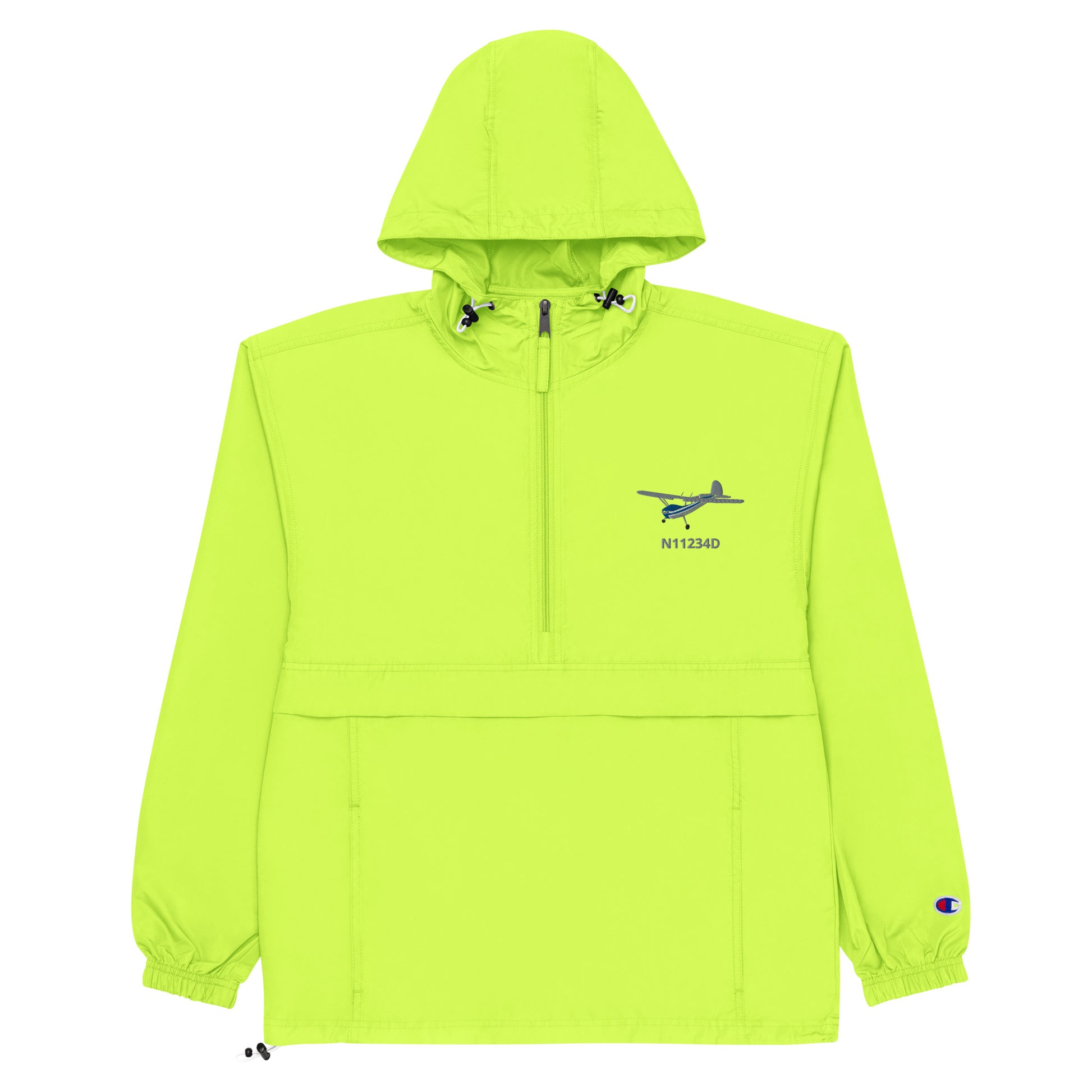 CESSNA 140 Polished grey - Blue CUSTOM N NUMBER Aviation Rain weather proof Embroidered Champion Packable Zip Jacket