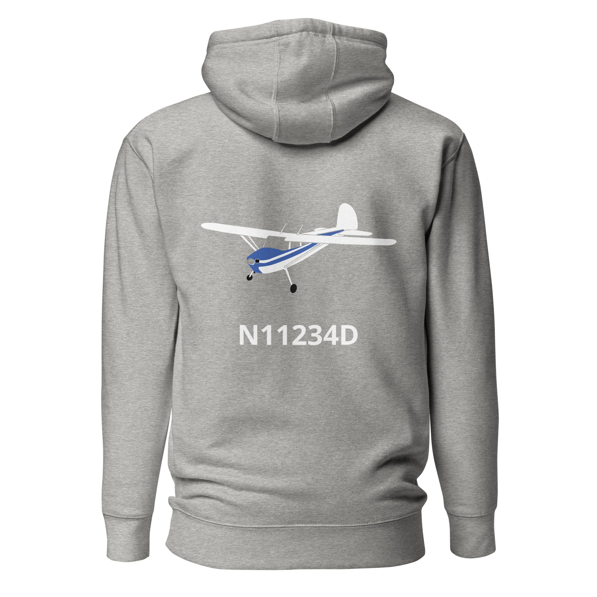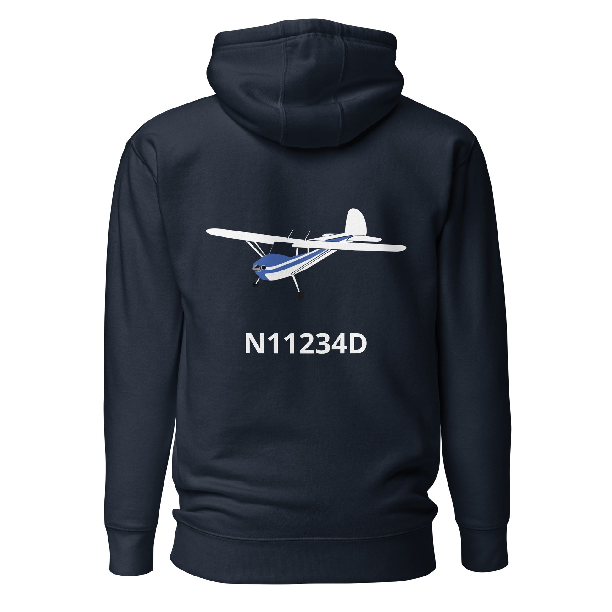 CESSNA 140 White - blue Back Print with front embroidery CUSTOM N Number Unisex Hoodie