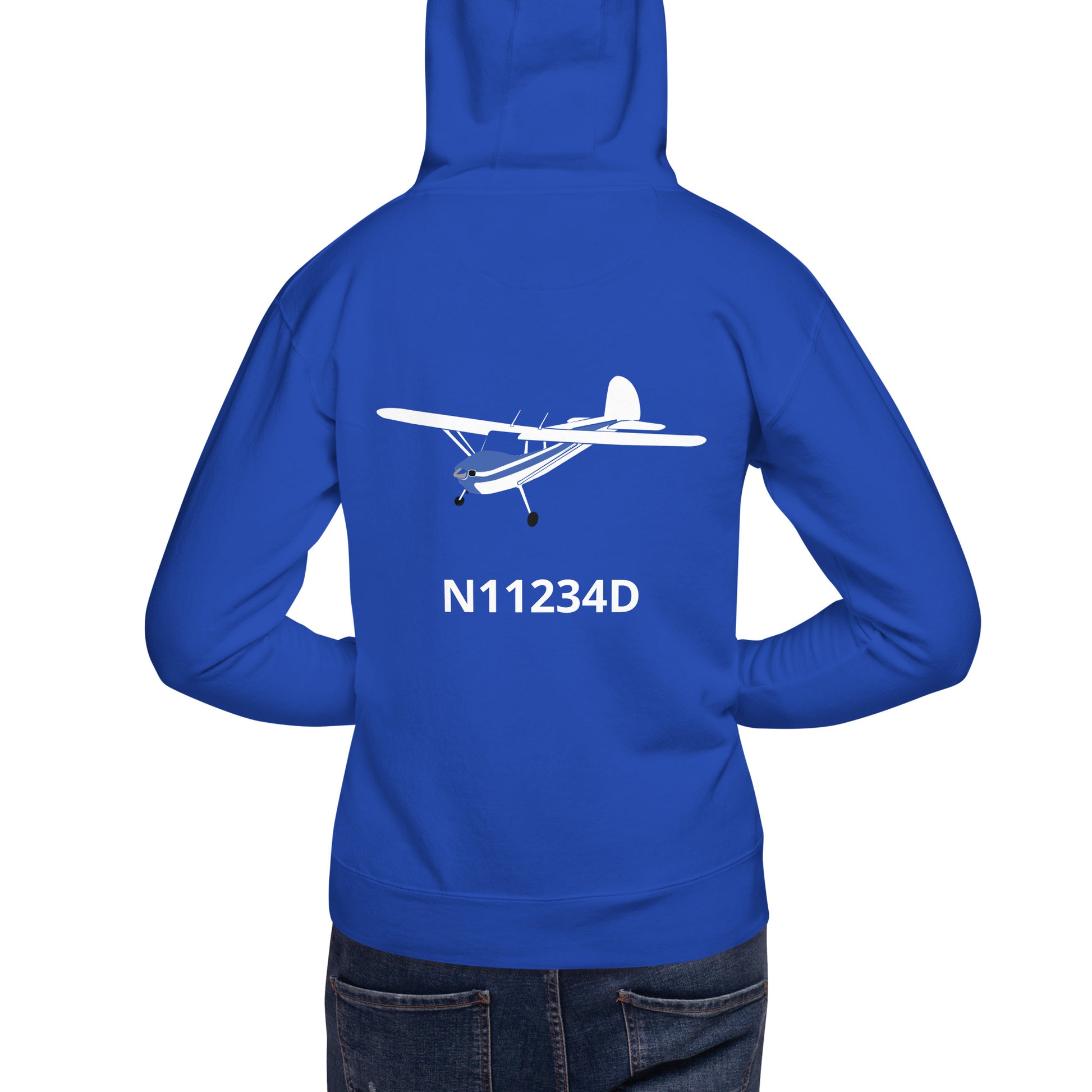 CESSNA 140 White - blue Back Print with front embroidery CUSTOM N Number Unisex Hoodie.
