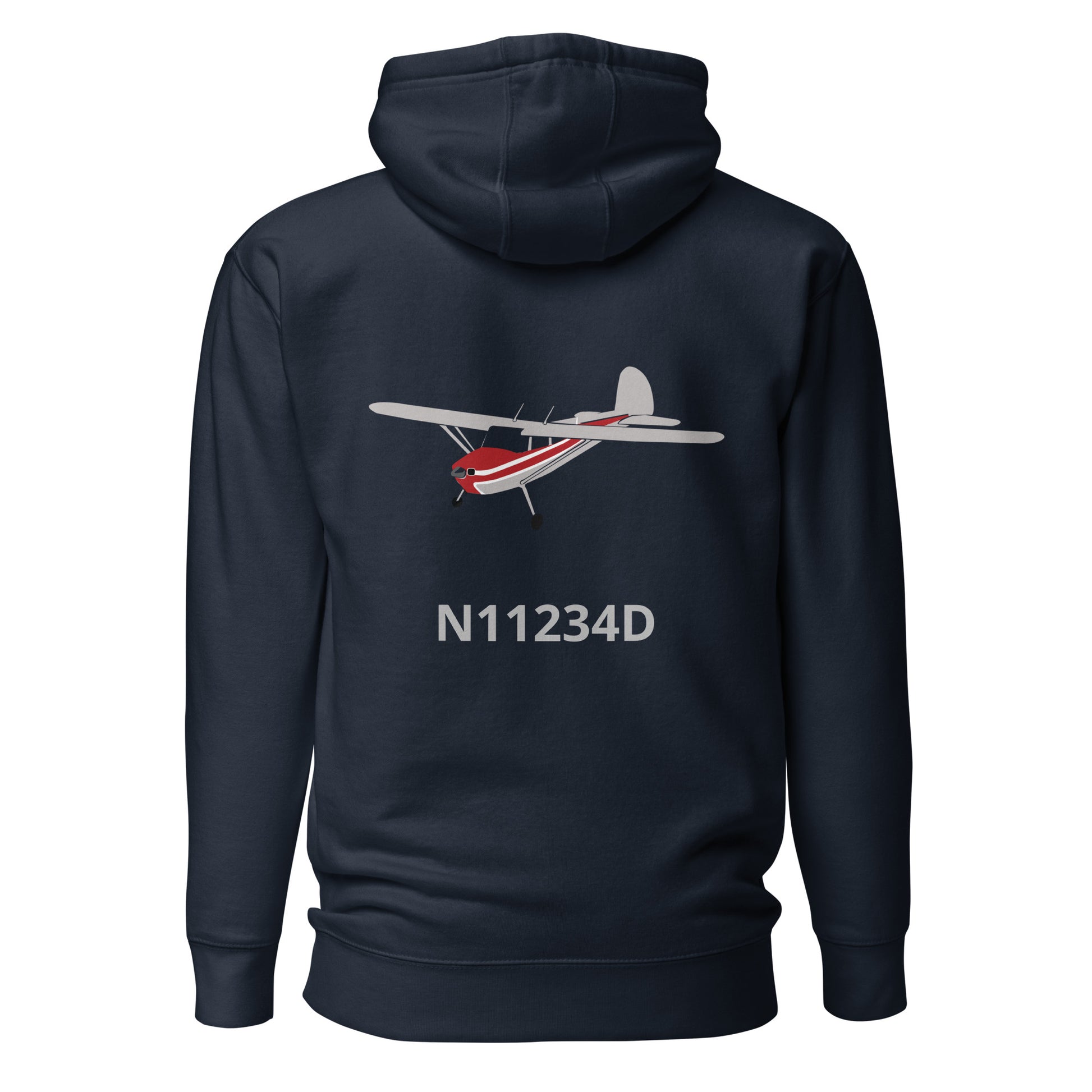 CESSNA 140 polished grey-red Back Print with front embroidery CUSTOM N Number Unisex Hoodie