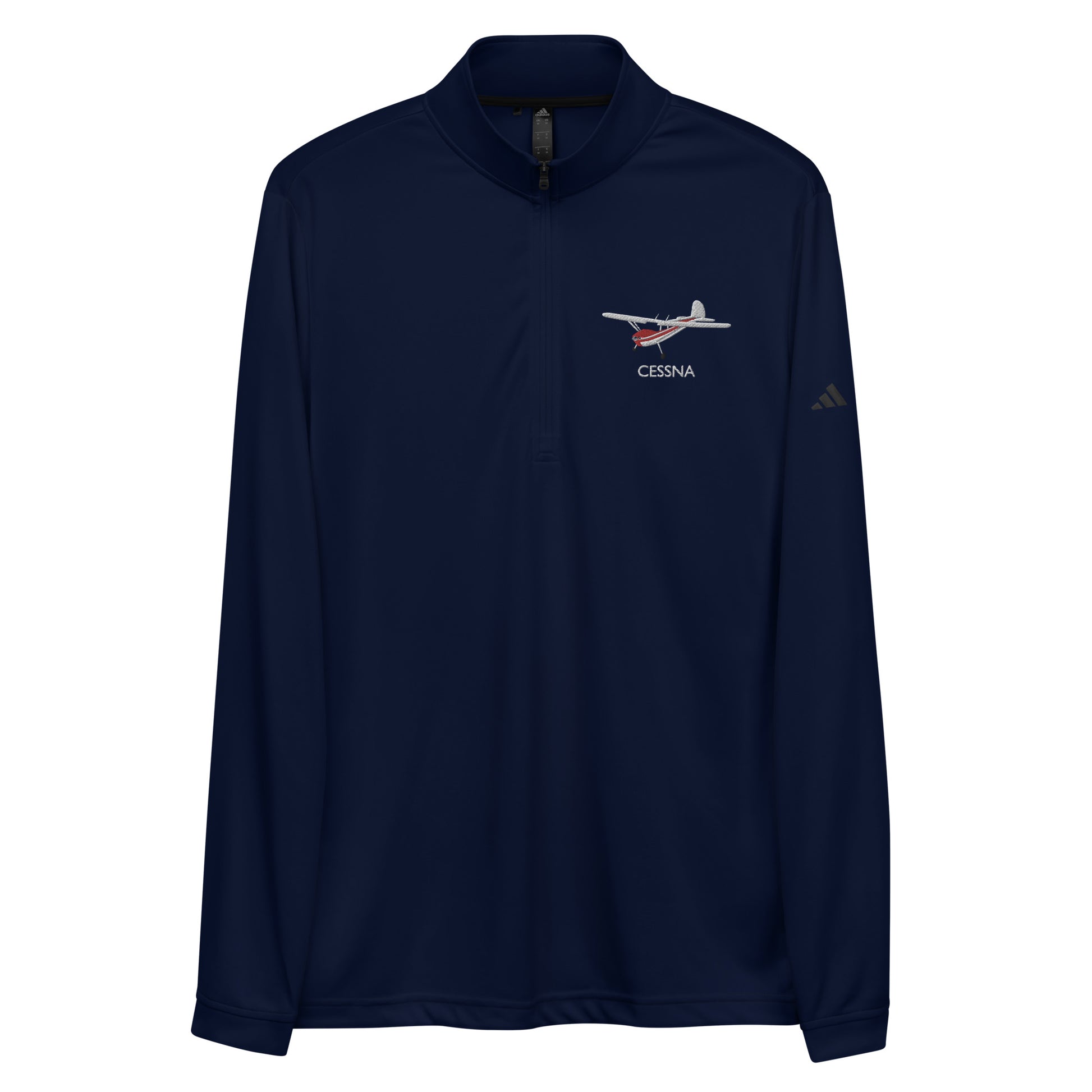 CESSNA 140 White - Red Embroidered ECO Sustainable UPF 50+ Quarter zip pullover - Recycled Polyester.