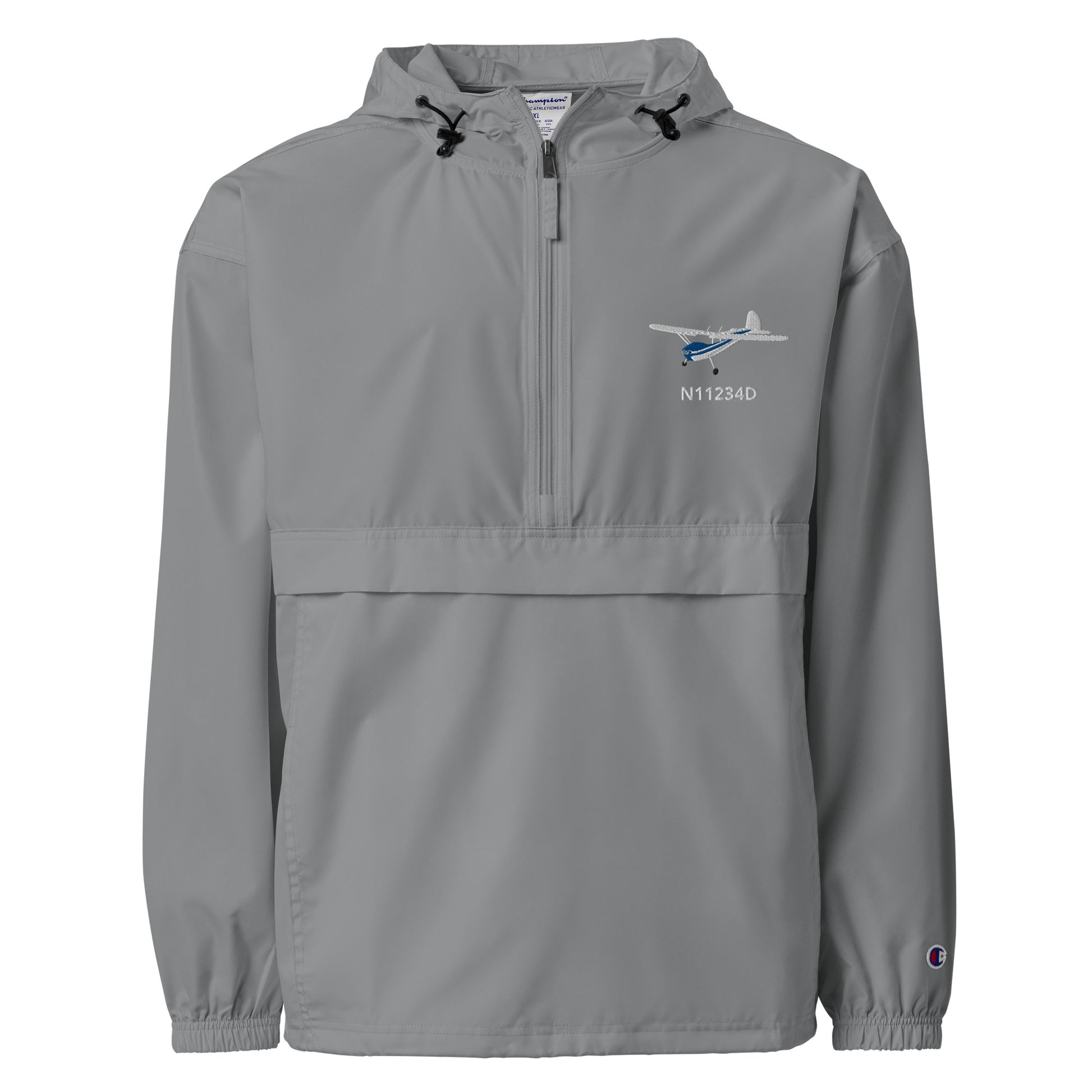 CESSNA 140 White - Red Trim CUSTOM N NUMBER Aviation Rain weather proof Embroidered Champion Packable Zip Jacket