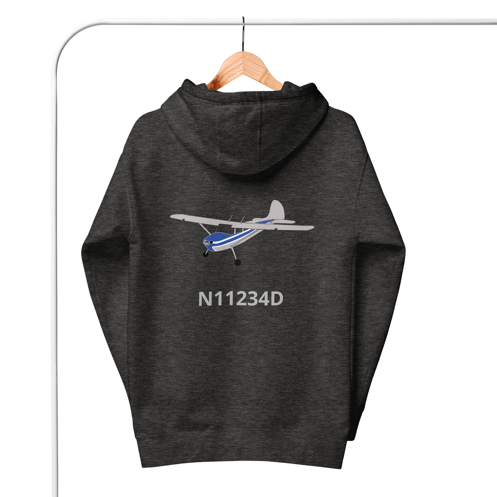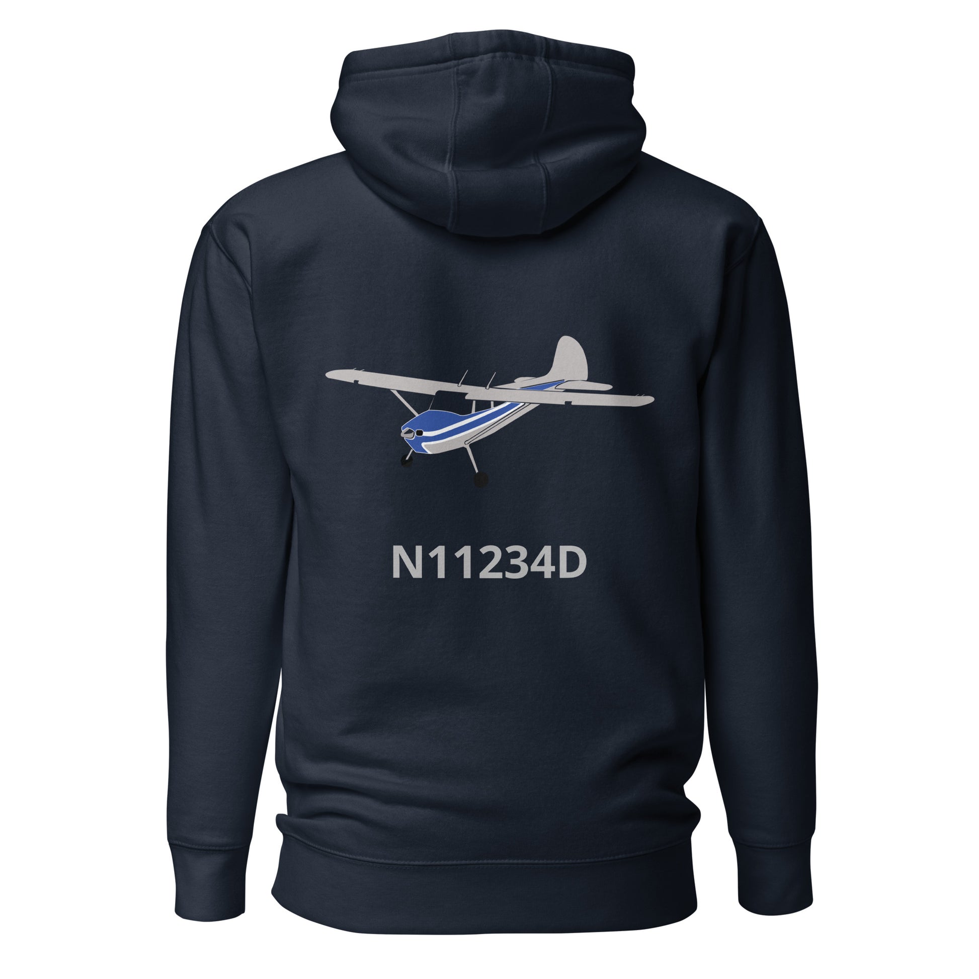 CESSNA 170 polished grey-blue Back Print with front embroidery CUSTOM N Number Unisex Hoodie