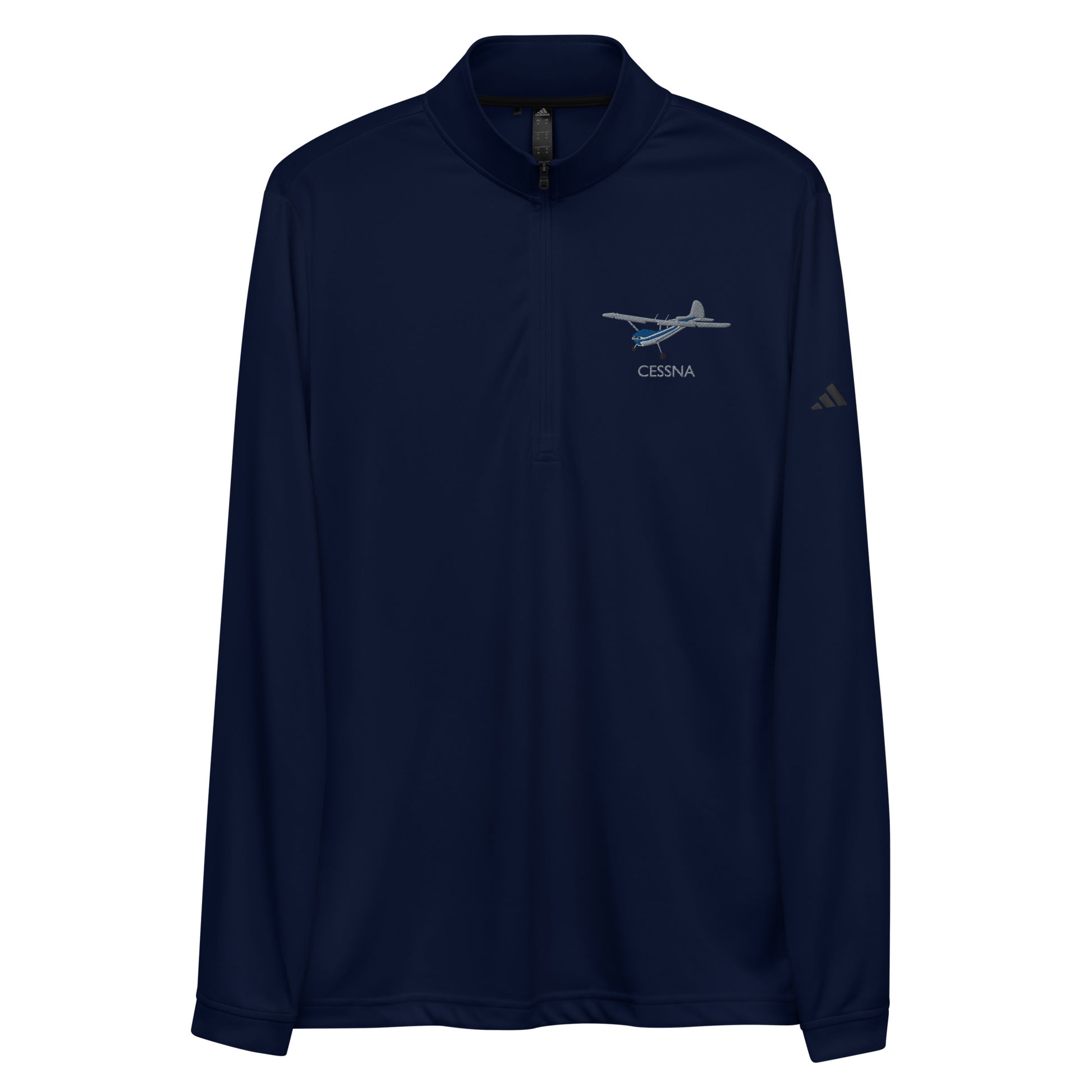 CESSNA 170 Polished grey - Blue Embroidered ECO Sustainable UPF 50+ Quarter zip pullover - Recycled Polyester