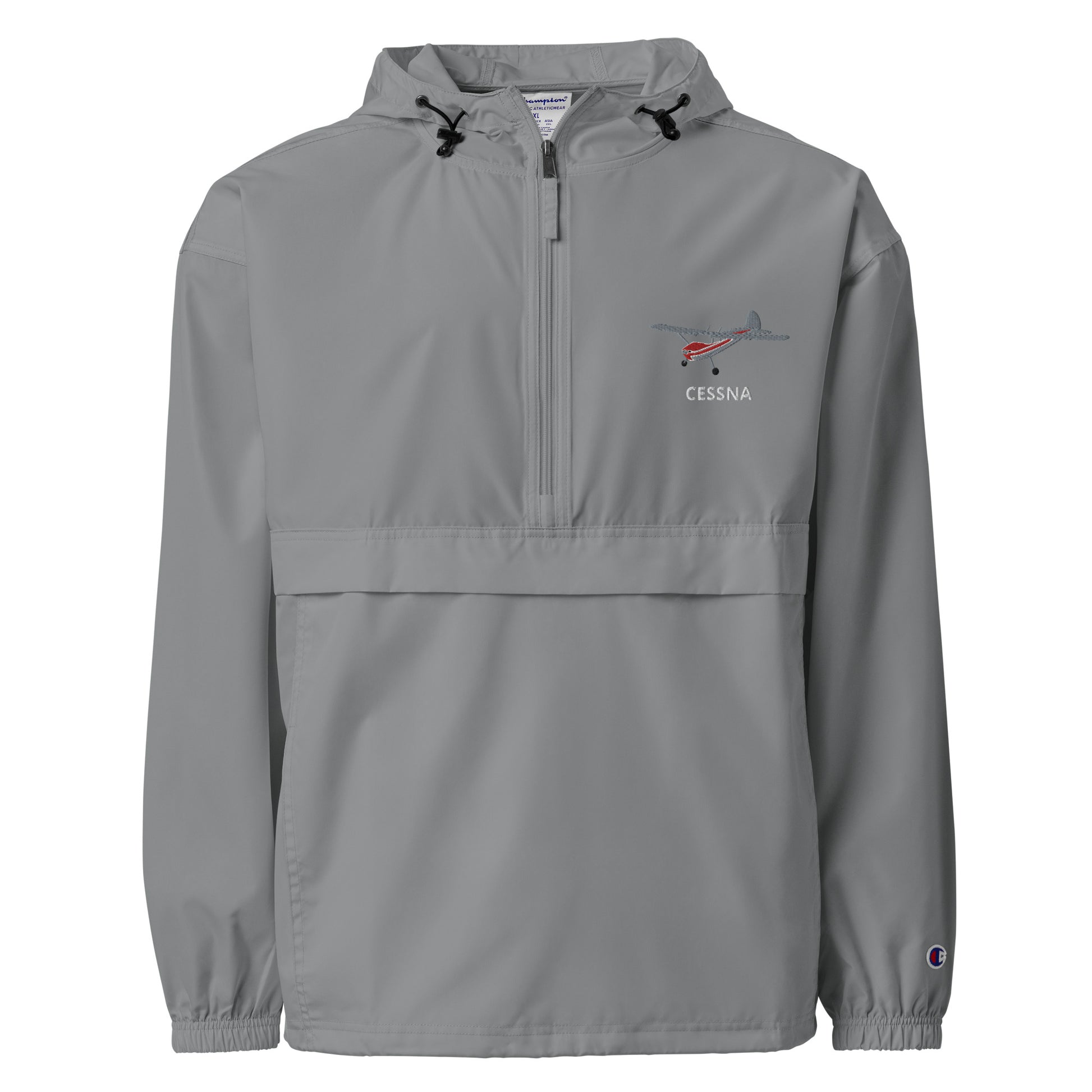 CESSNA 170 Polished grey - Red Trim Aviation Rain weather proof Embroidered Champion Packable Zip Jacket.