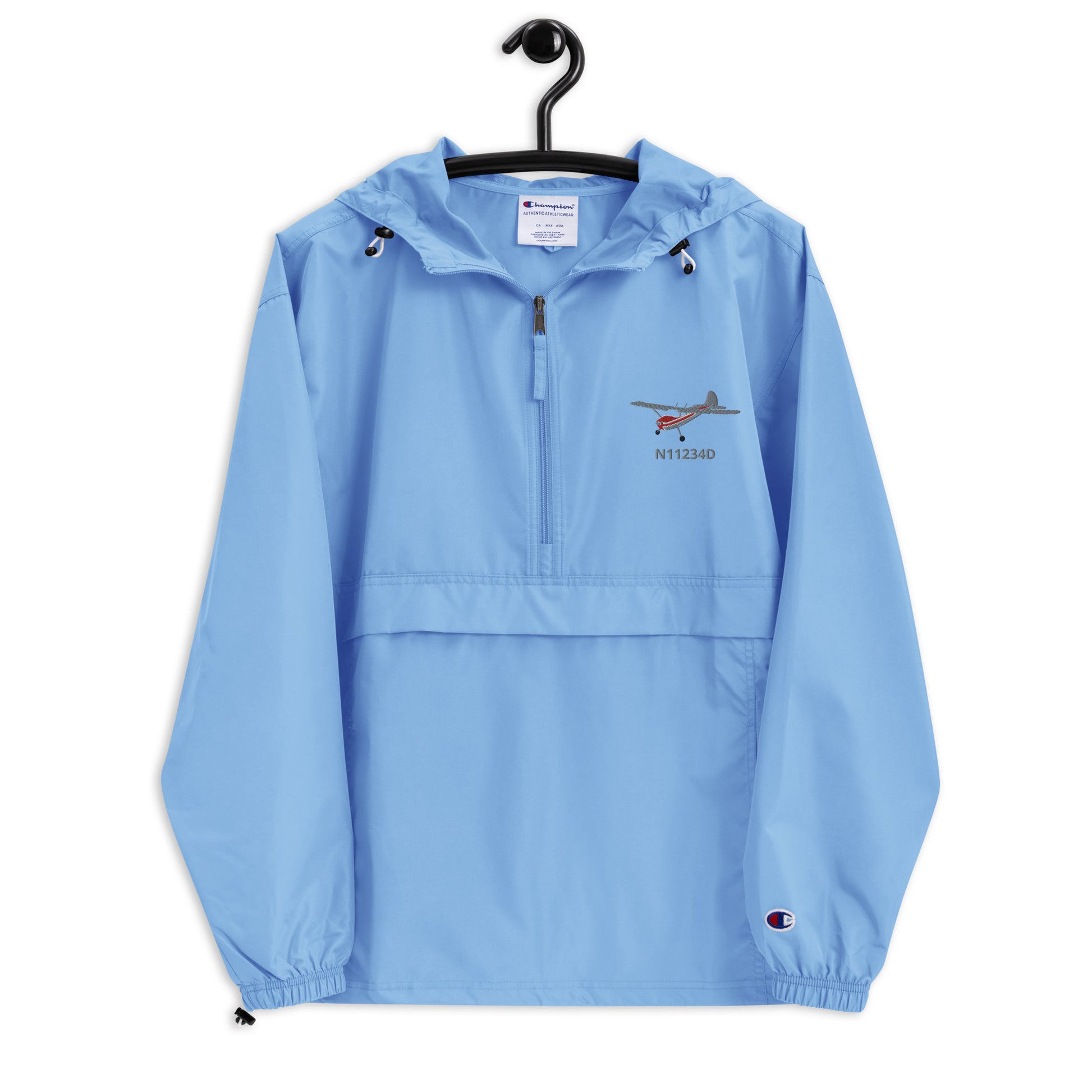 CESSNA 170 Polished grey - Red Trim CUSTOM N NUMBER Aviation Rain weather proof Embroidered Champion Packable Zip Jacket