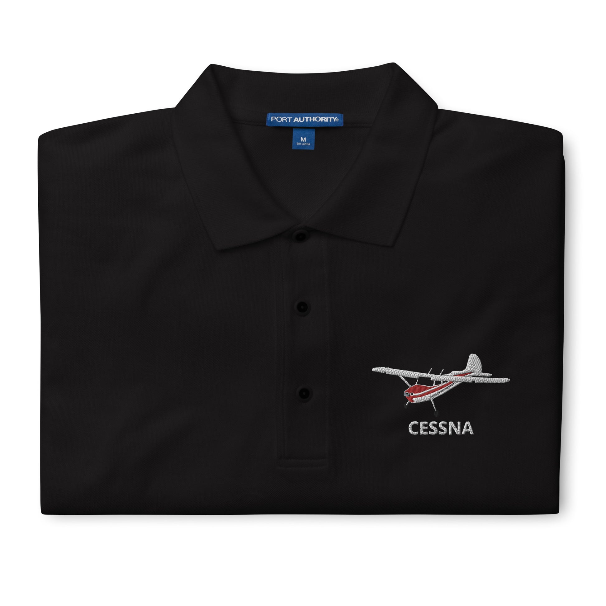 CESSNA 170 White - Red embroidered Men's Premium Aviation Polo