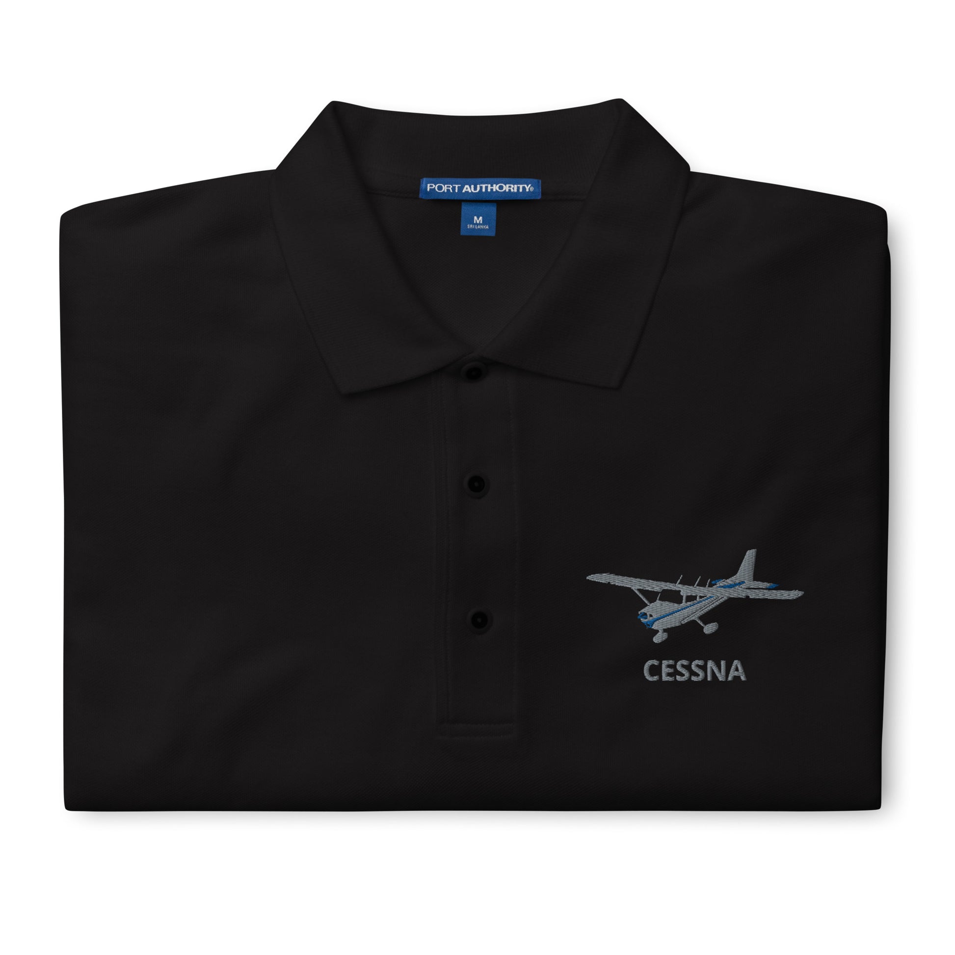 CESSNA 172 Polished grey - blue Embroidered Premium Men's Aviation Polo