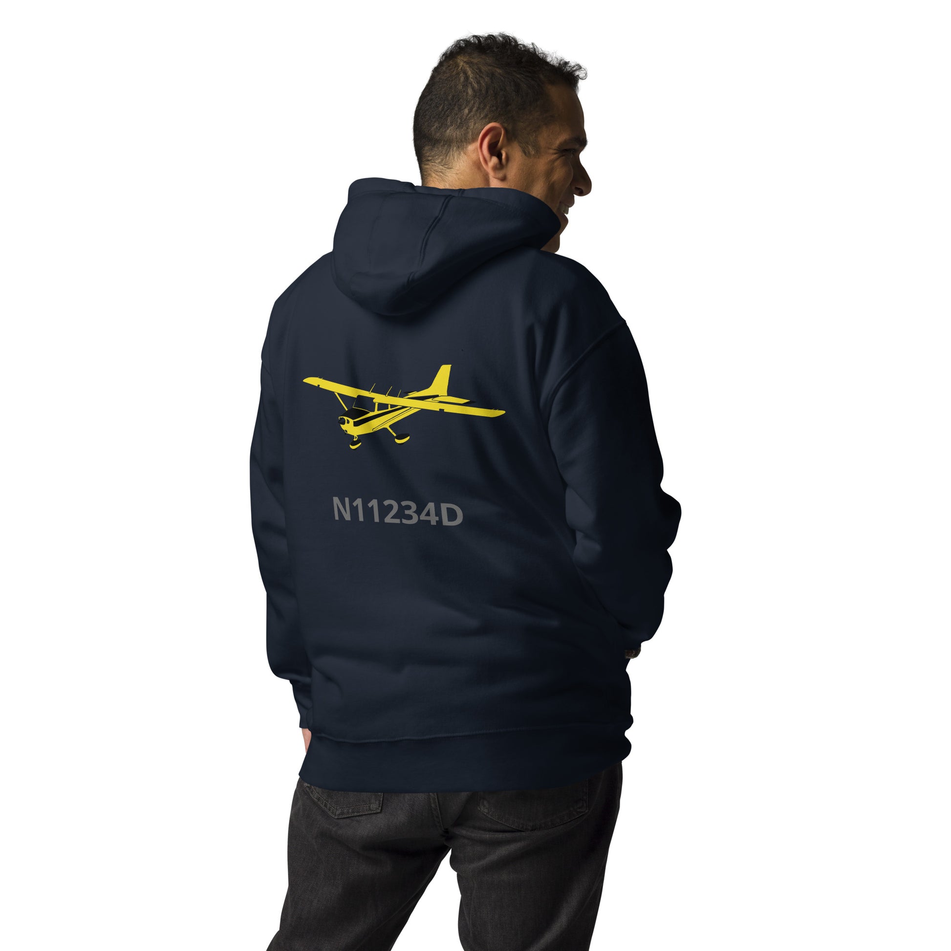CESSNA 172 retro yellow Back Print with front embroidery CUSTOM N Number Unisex Hoodie