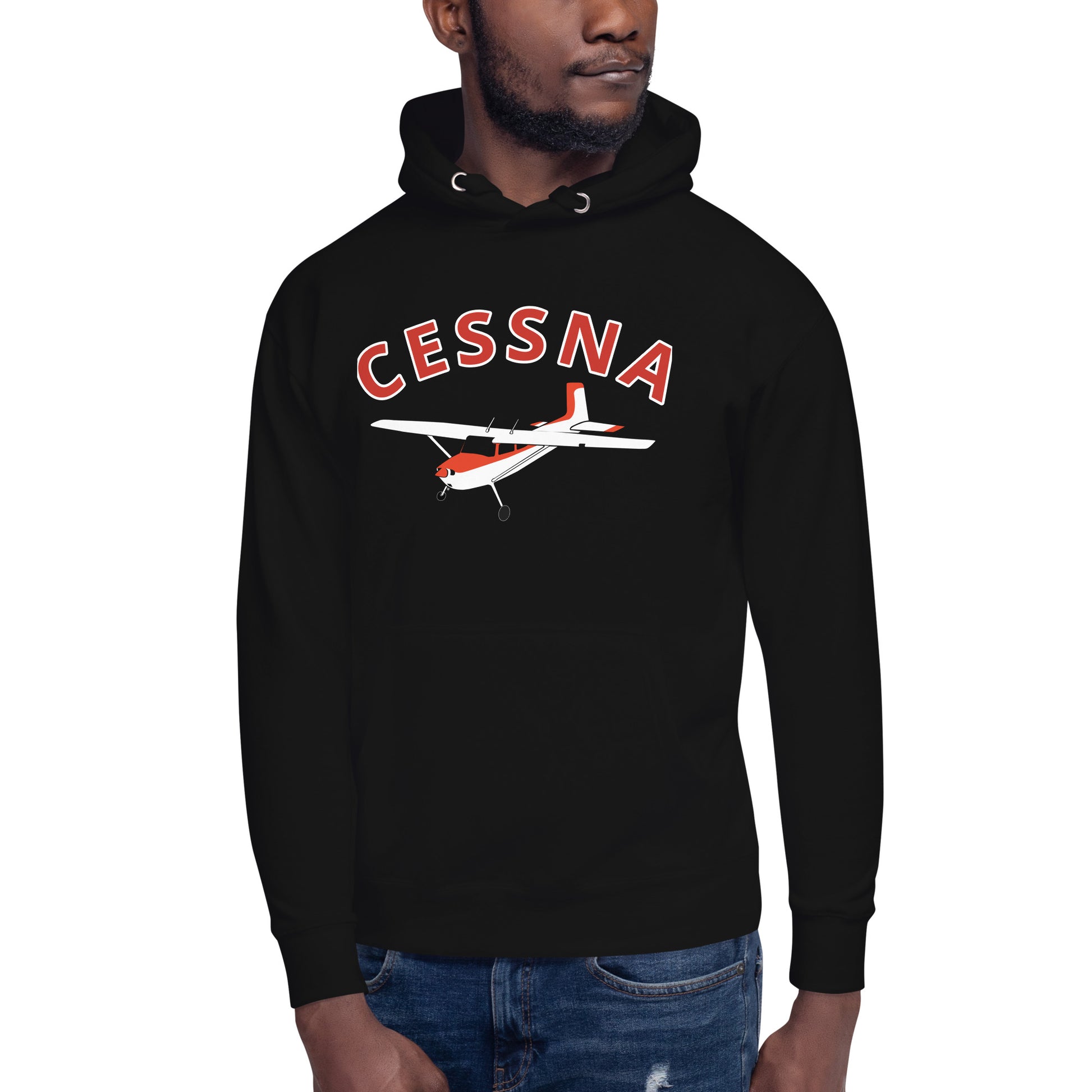 CESSNA 180 Skywagon White-Red aircraft graphic - cozy Unisex Hoodie. Classic fit for men and women