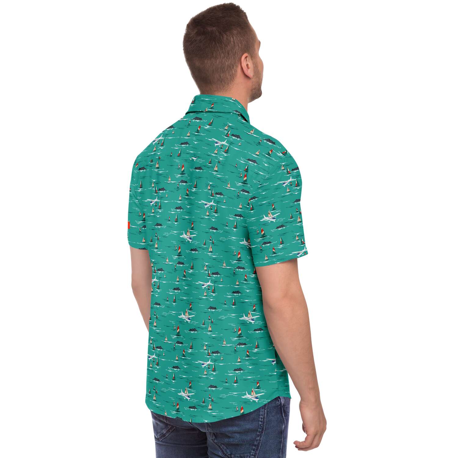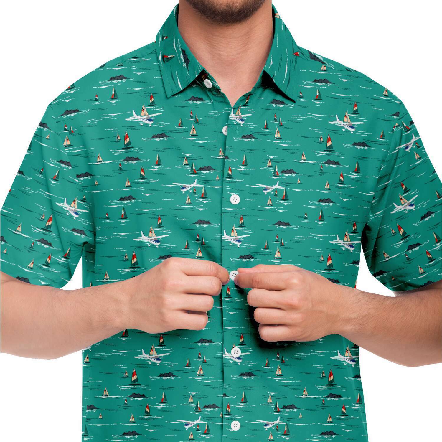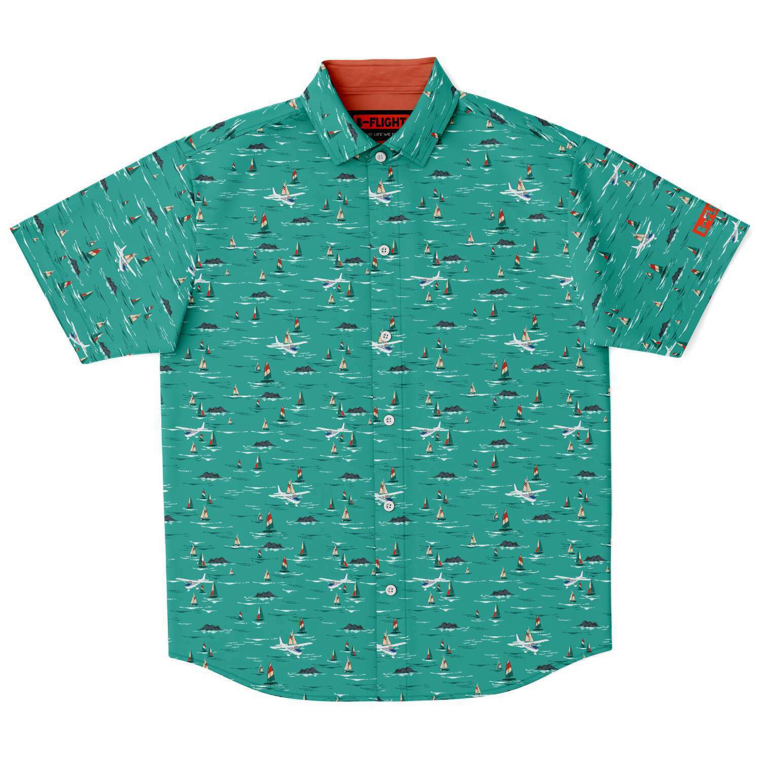 Cessna 172 Aviation Summer sailboats- Short-sleeve button-down shirt