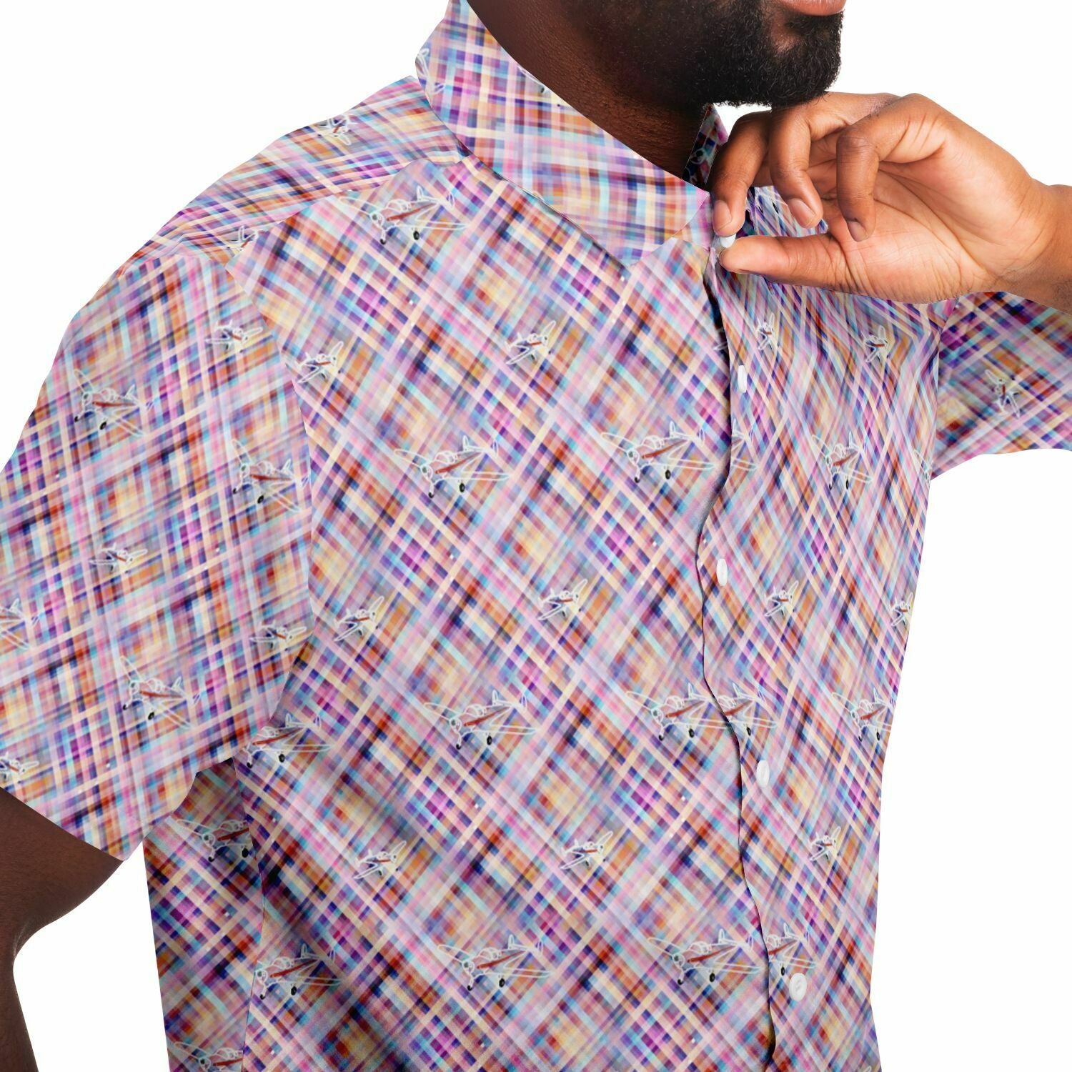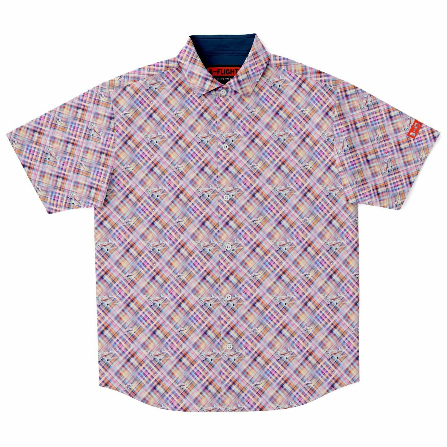 ErCoupe Aviation Summer Plaid - Short-sleeve button-down shirt - Pink plaid - poplin