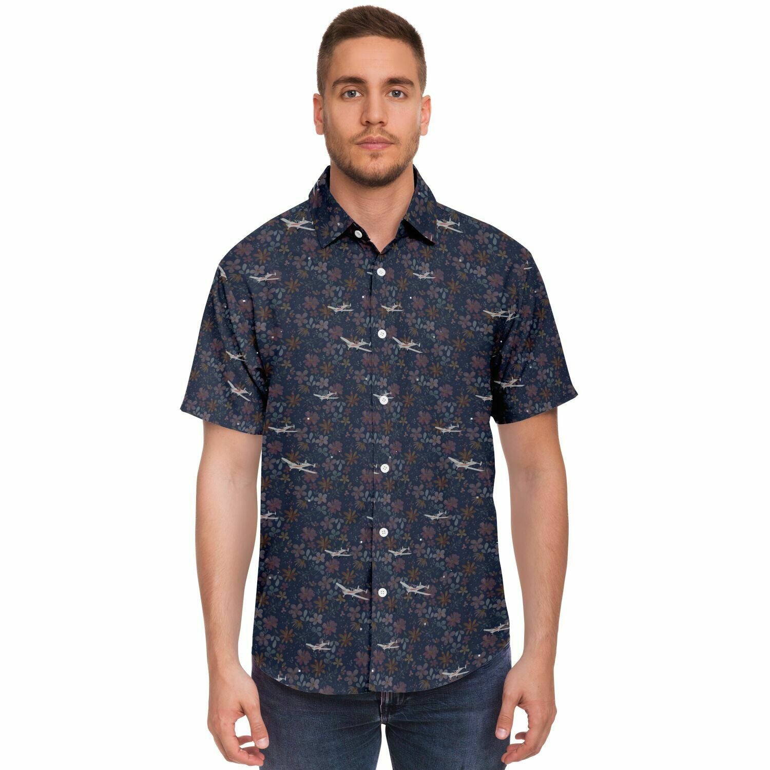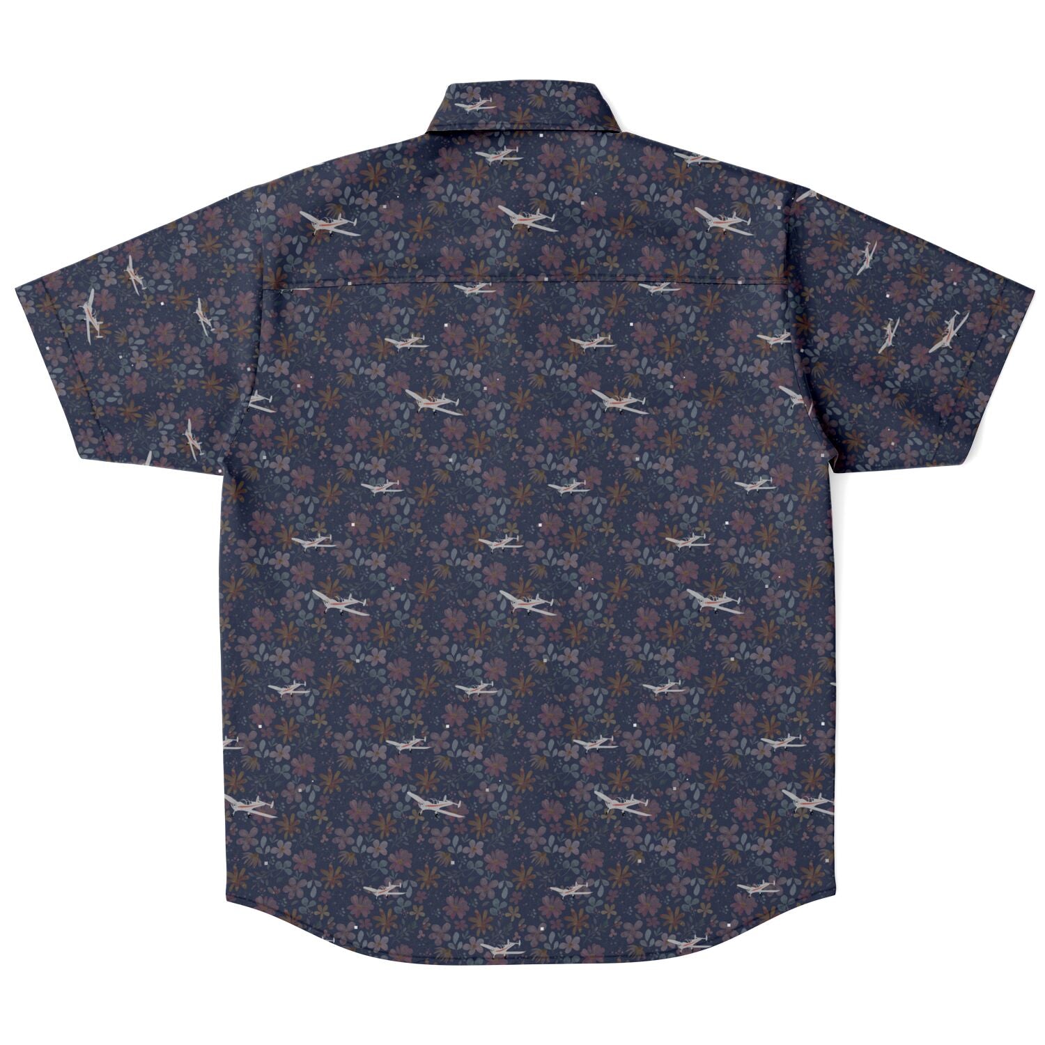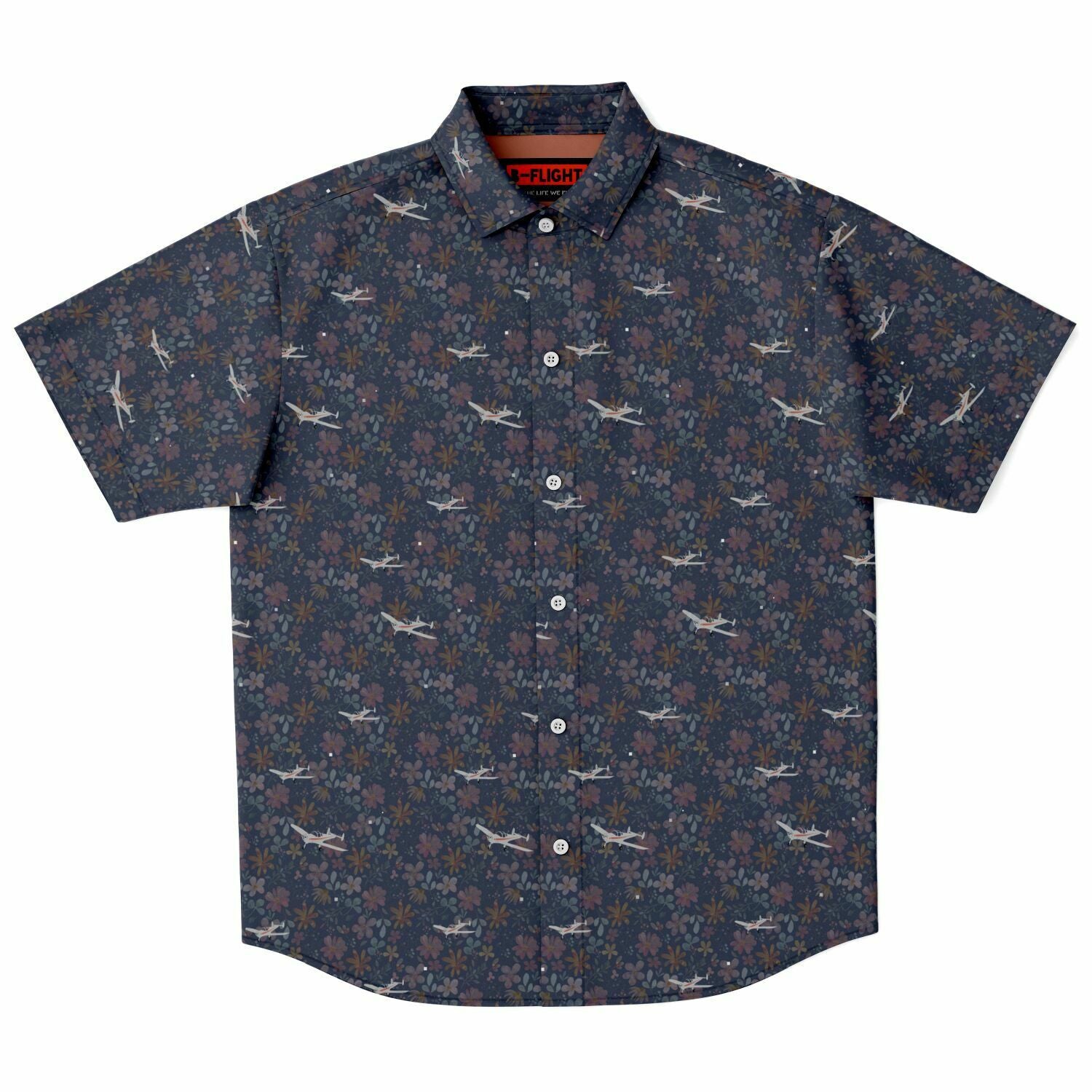 Stay cool with this classic printed special aviation ErCoupe button-down shirt featuring a flattering dark floral background with silver polished ErCoupe aircraft. Show off your aviation love with this easy-care casual spread collar short sleeve shirt that is both stylish and laid-back, perfect for flying and airport gatherings. Great attention to detail with coordinating solid color inside back yoke panel. It comes in a regular width. Can be worn tucked or untucked.