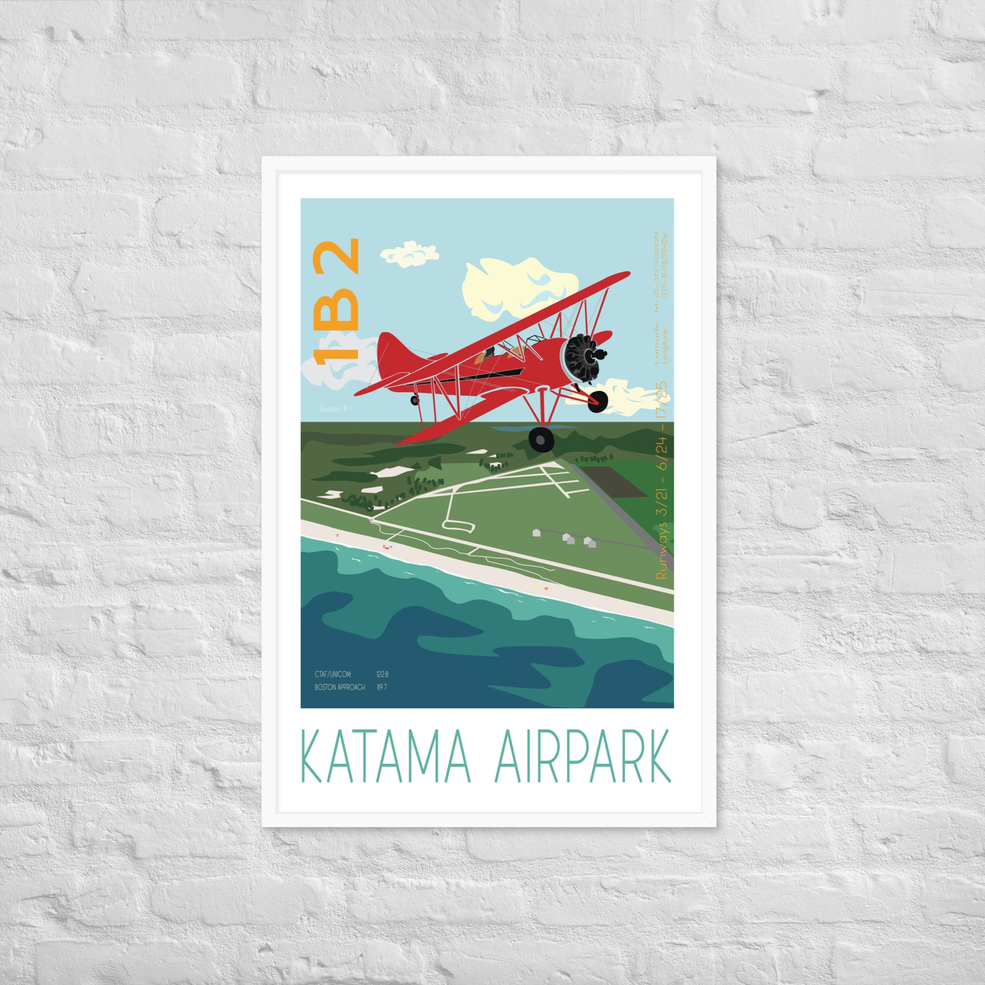 FRAMED poster 36x24 inch- Katama Airpark- Martha's Vineyard Red Biplane Waco UPF 7 Vintage Style Retro Graphic