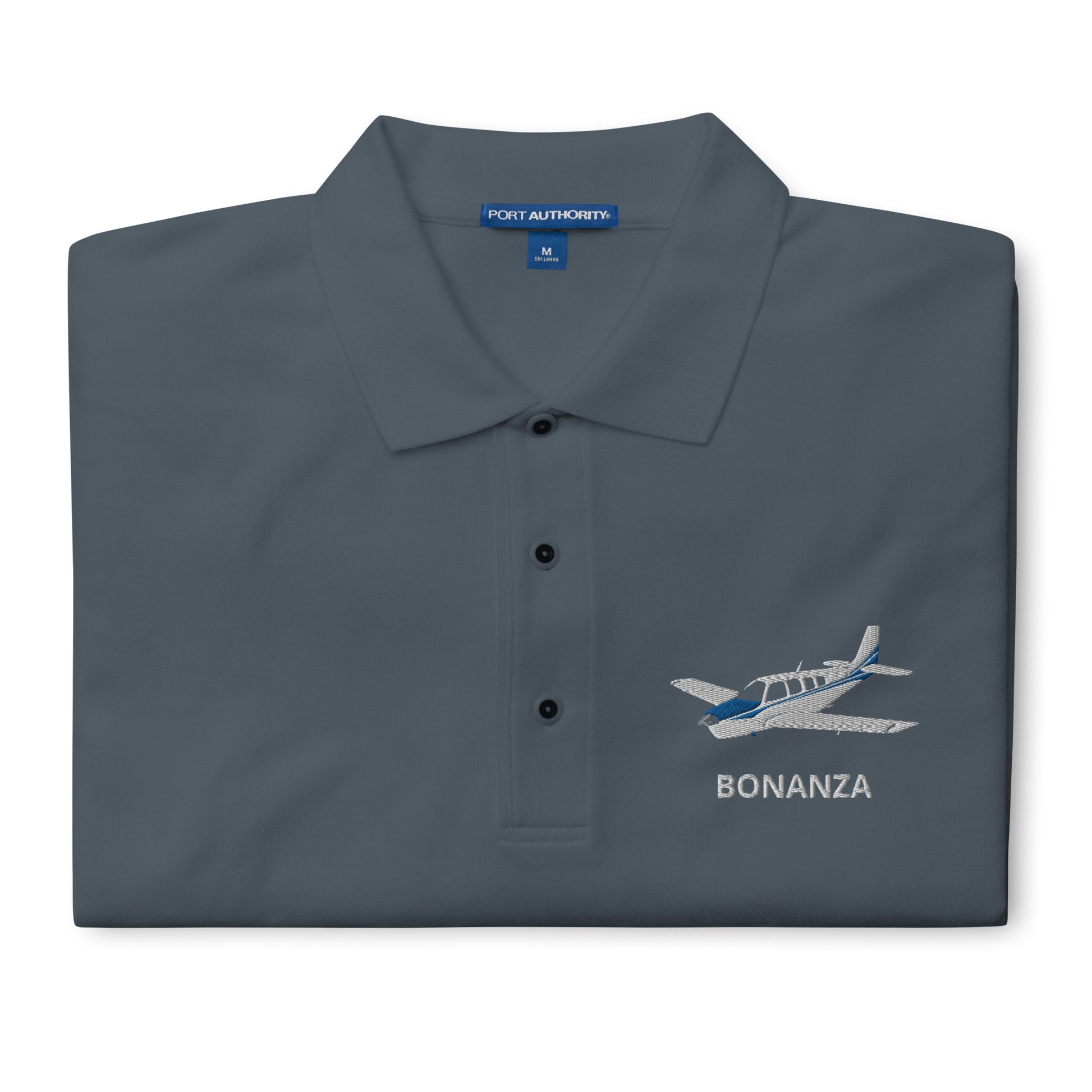 BONANZA A36 Blue Embroidered Classic Mens Aviation Polo