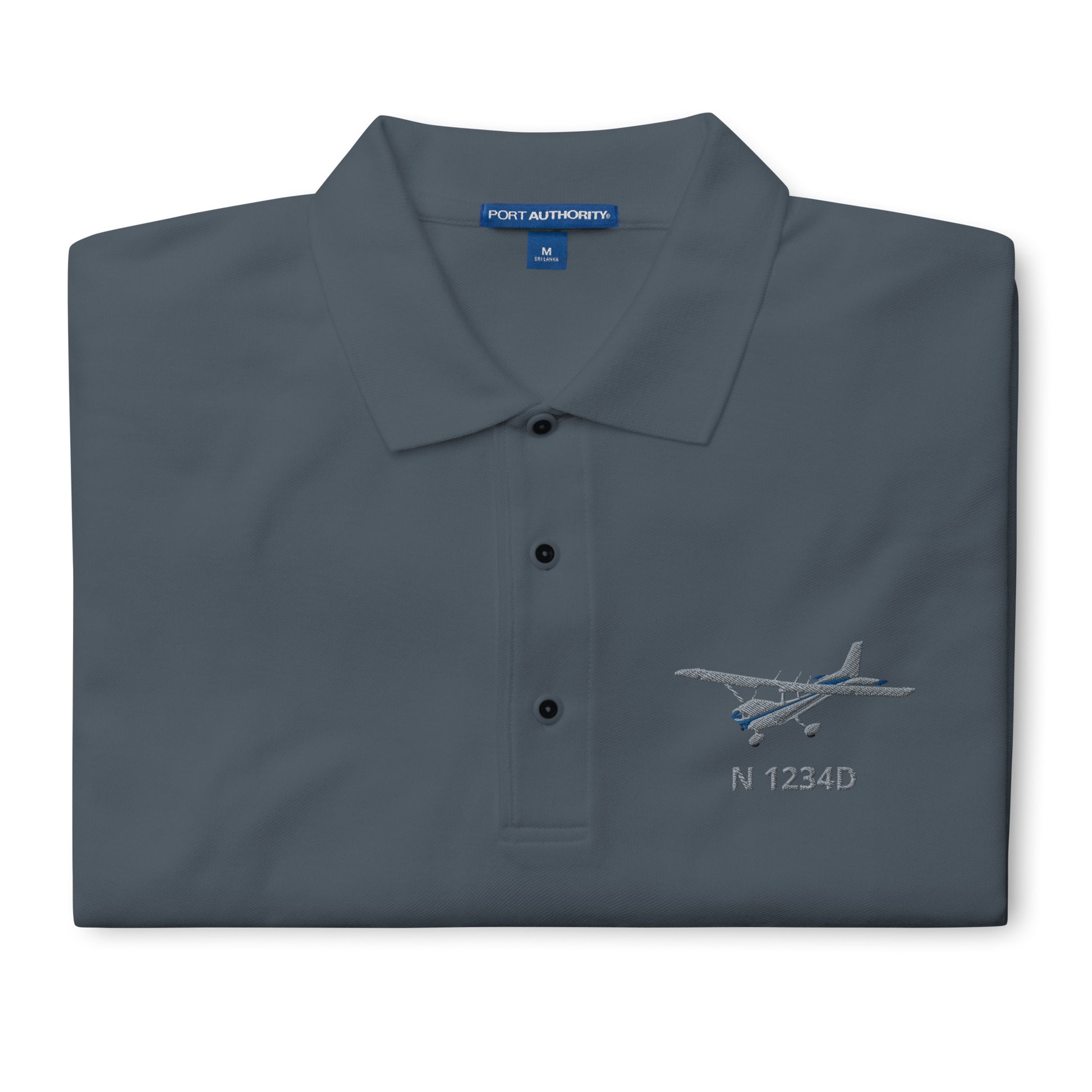 CESSNA 172 Skyhawk Polished grey - Blue CUSTOM N Number Embroidered Men's Premium Aviation Polo