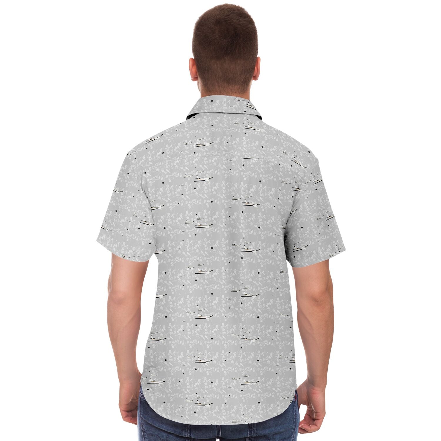 BONANZA F33 Printed Short Sleeve Button Down Shirt - Light grey
