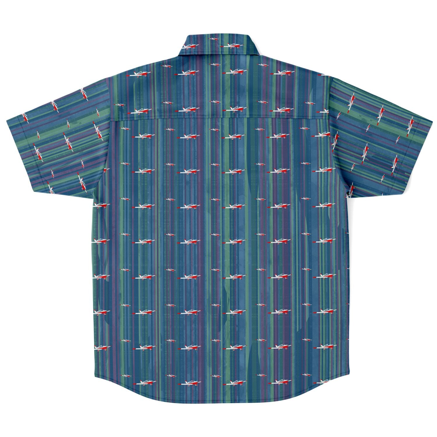 CHEROKEE aircraft Printed Short Sleeve Button Down Shirt - Vintage blue - poplin