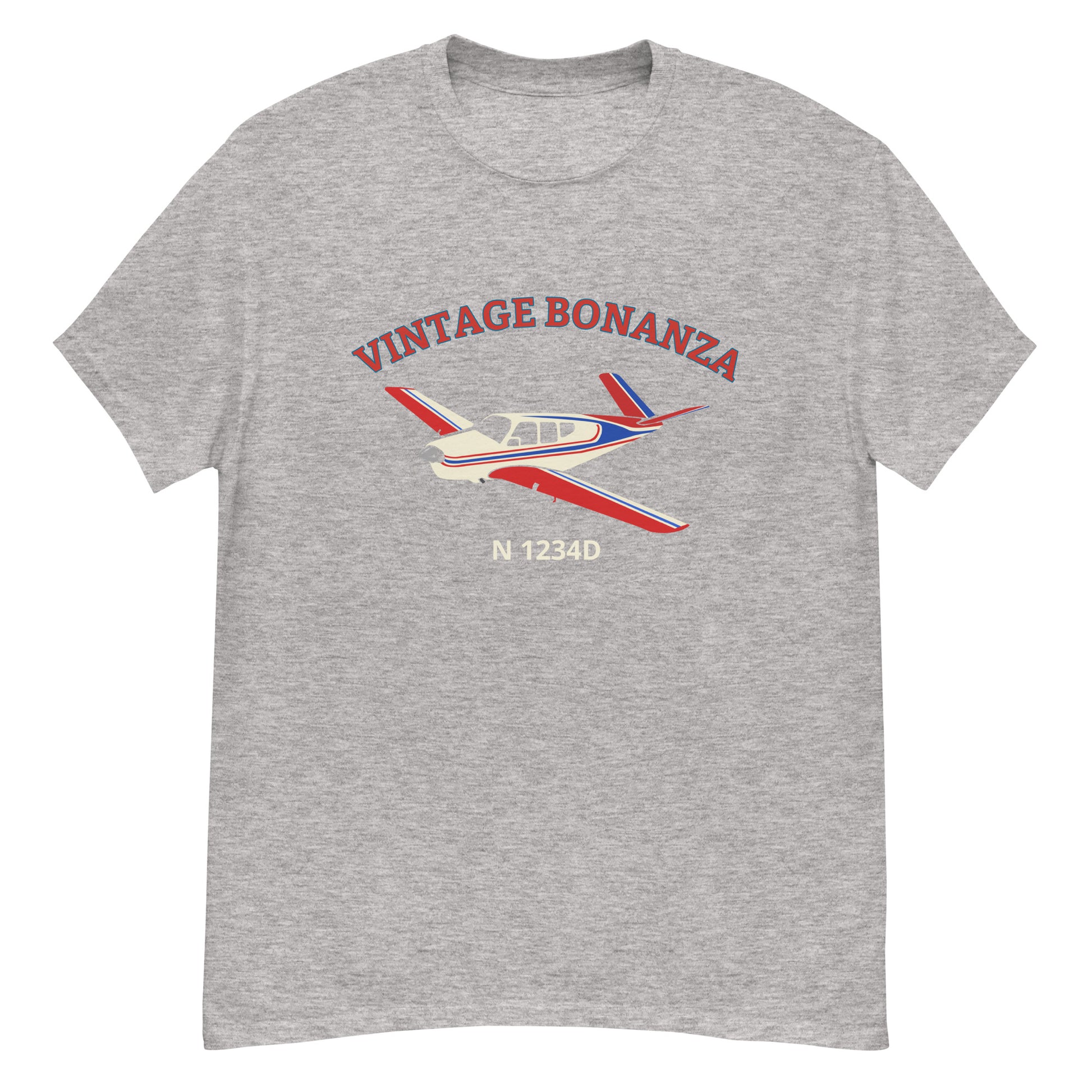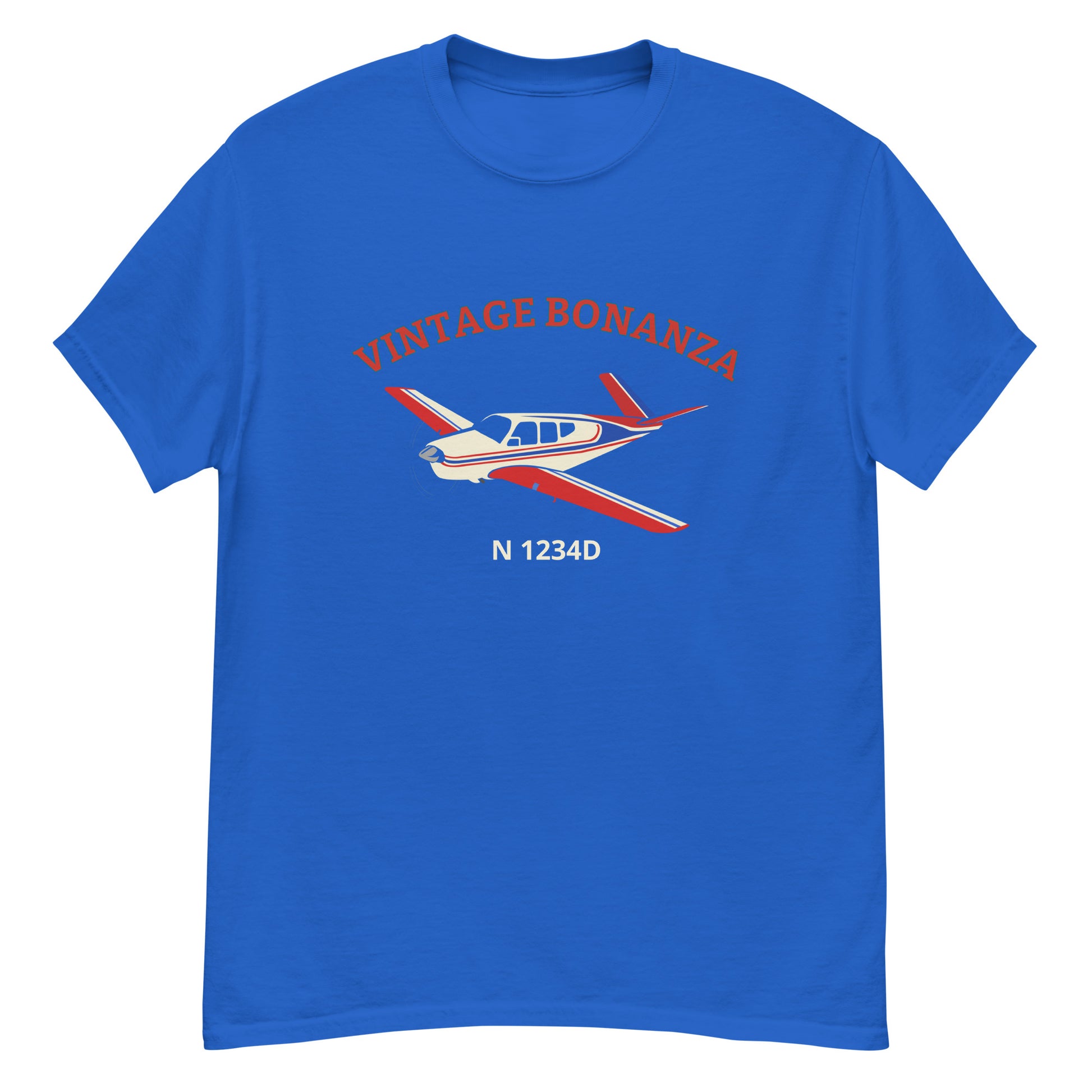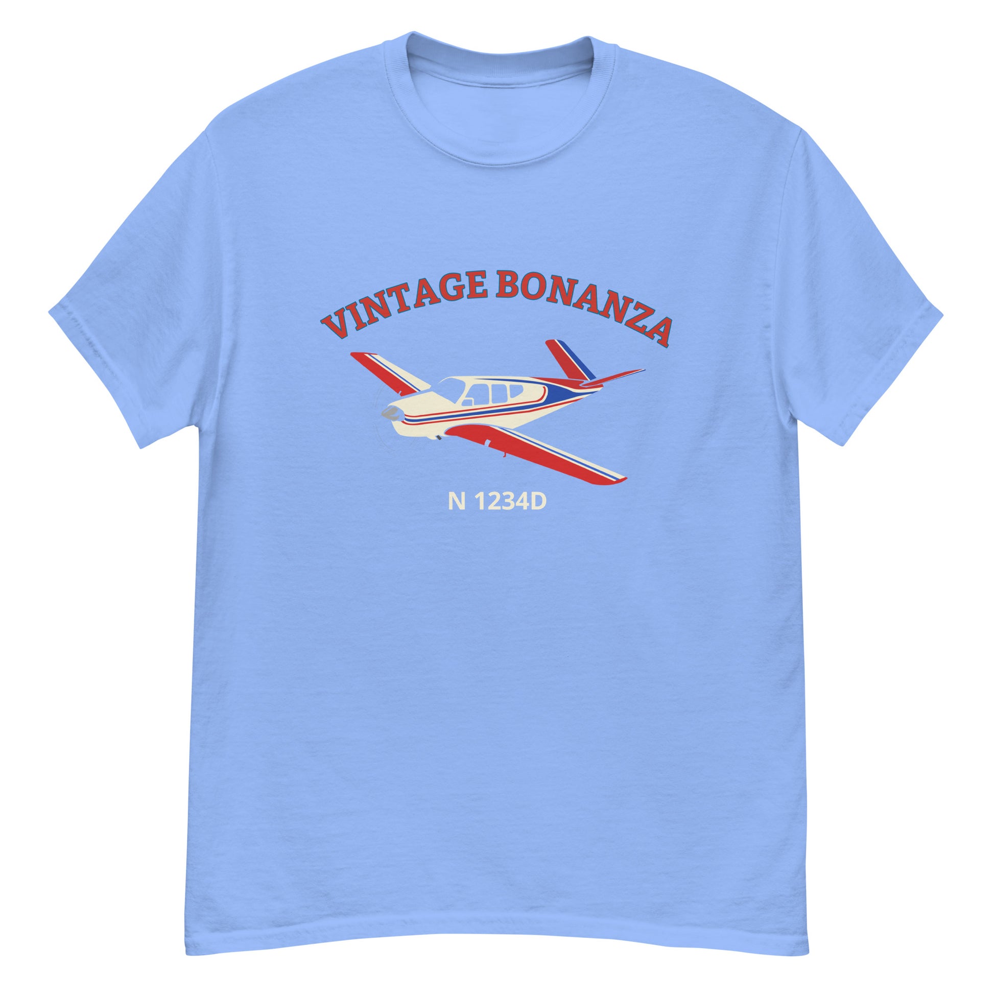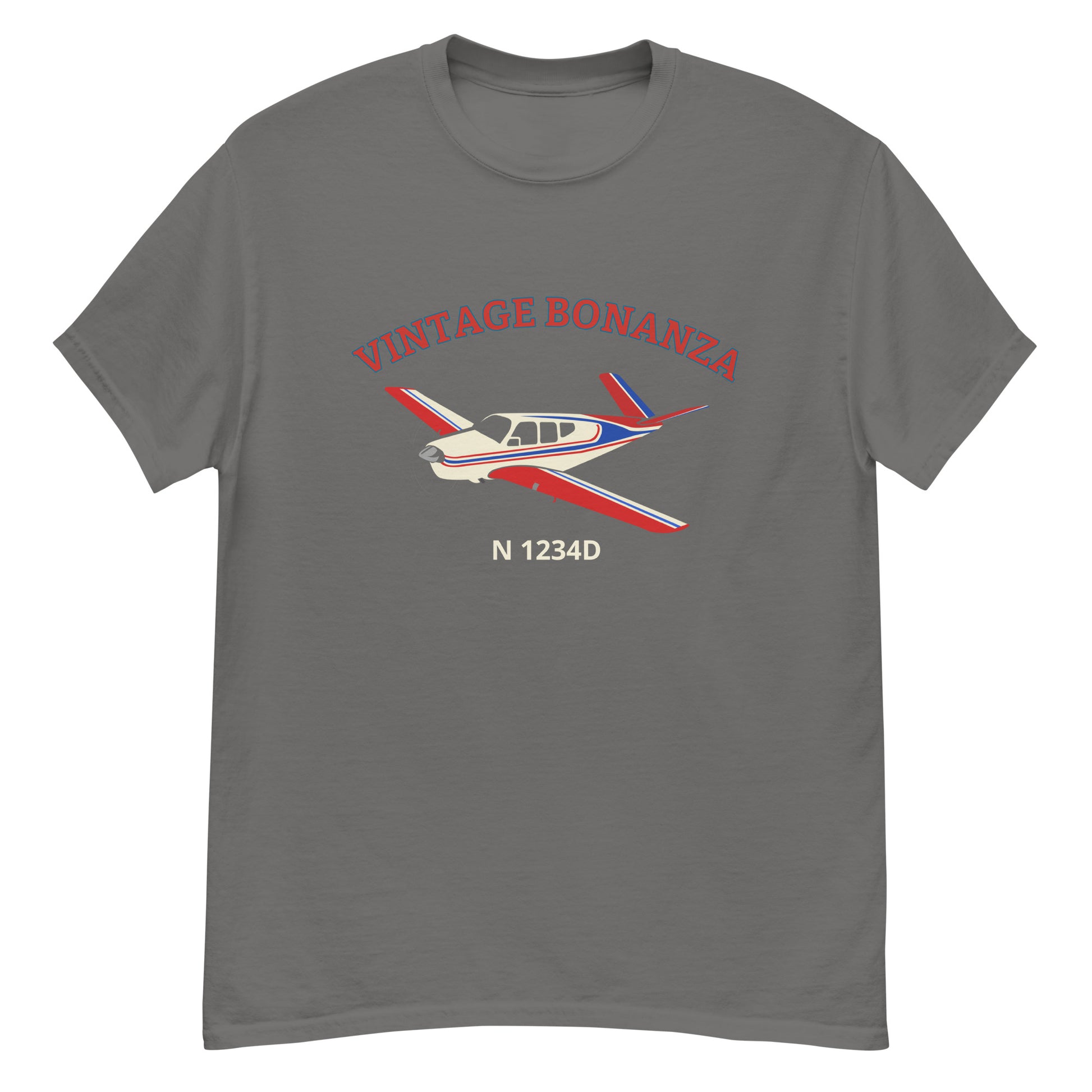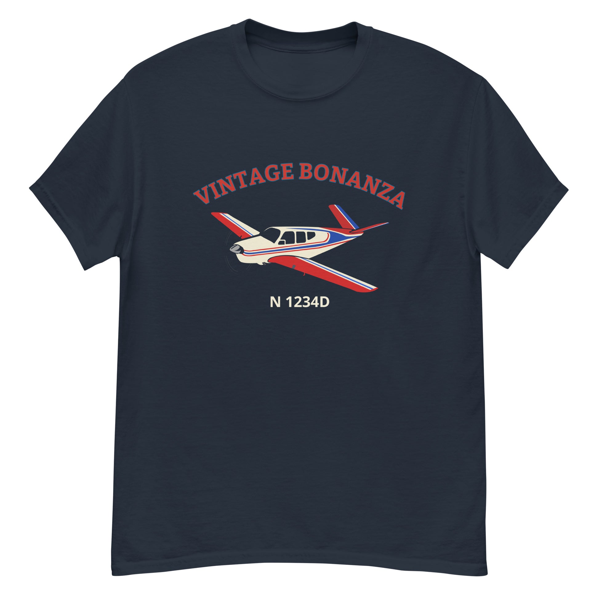 V-TAIL BONANZA Vintage tri color 2 stripe CUSTOM N Number Printed Short-Sleeve Classic Fit Aviation T-Shirt