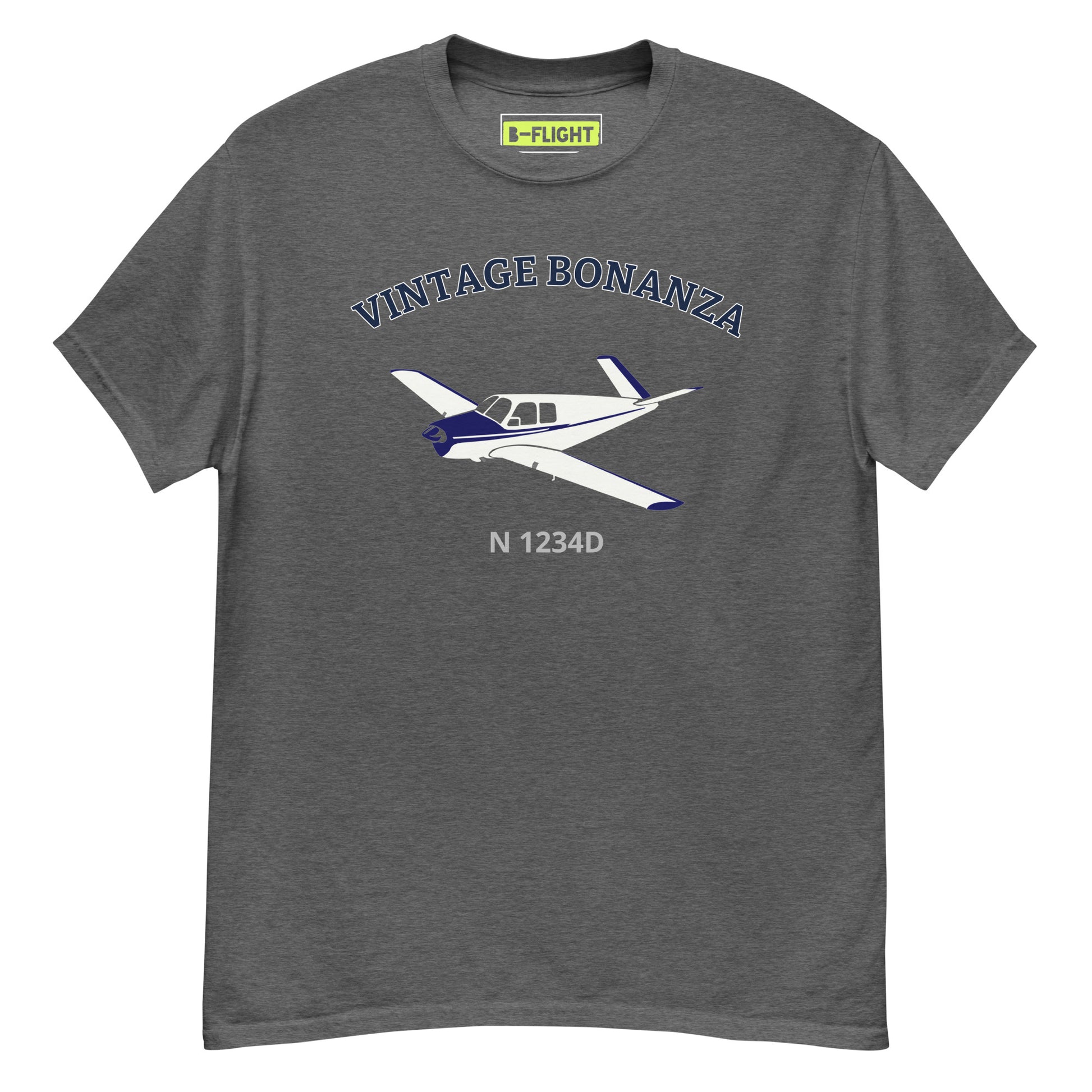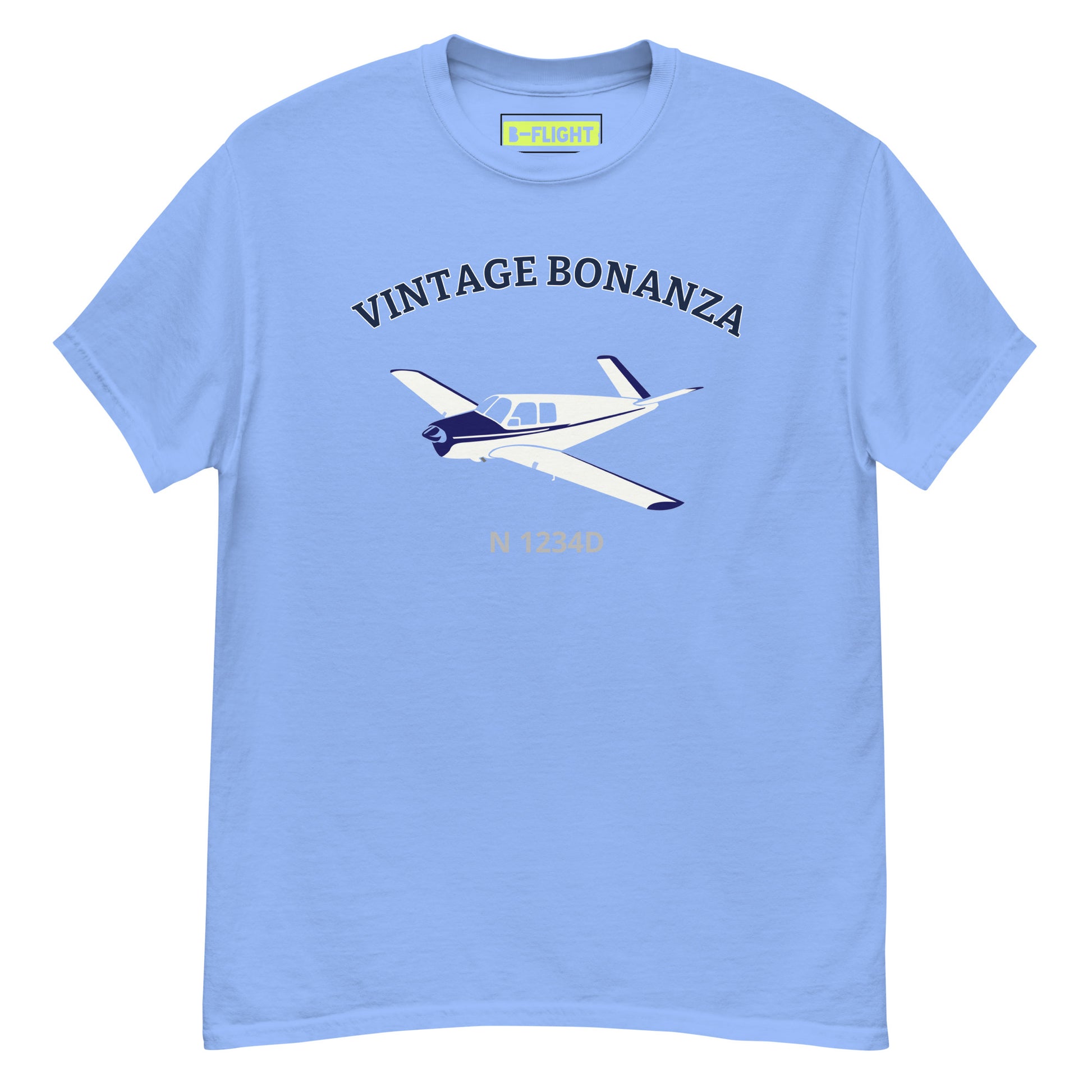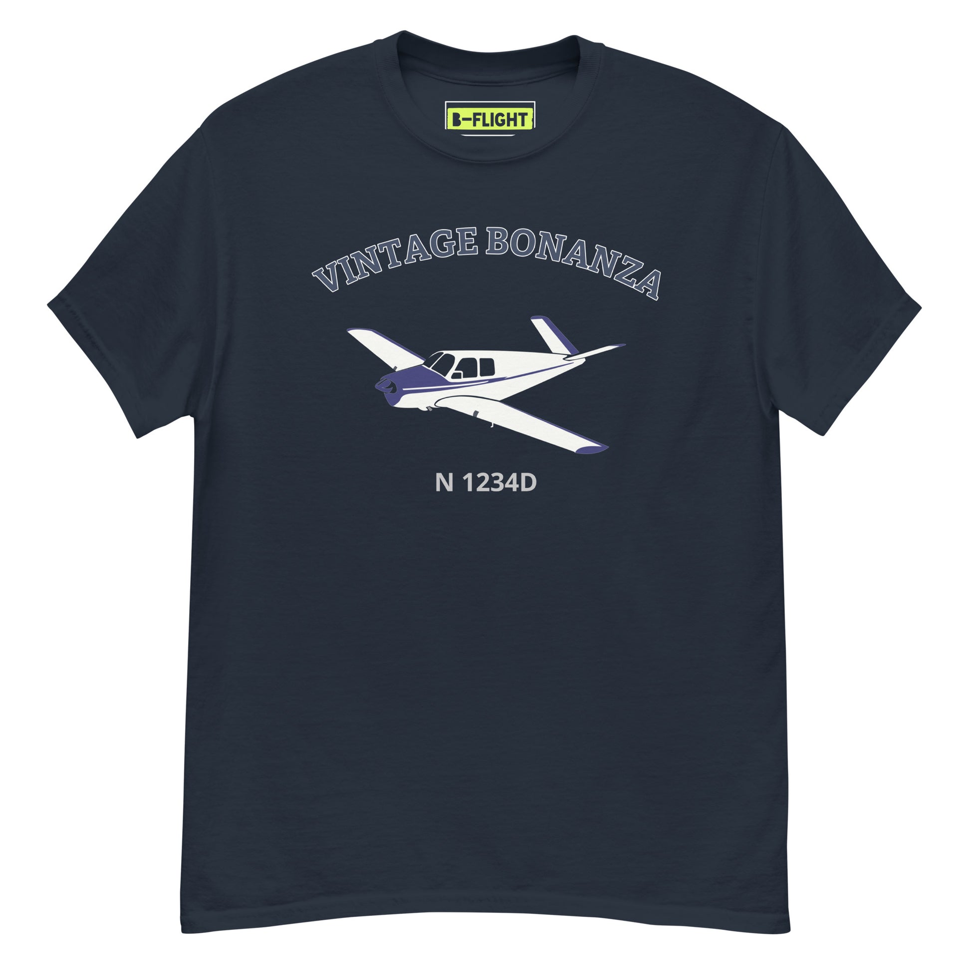 V-TAIL BONANZA White- blue CUSTOM N Number graphic printed Men's classic fit aviation tee
