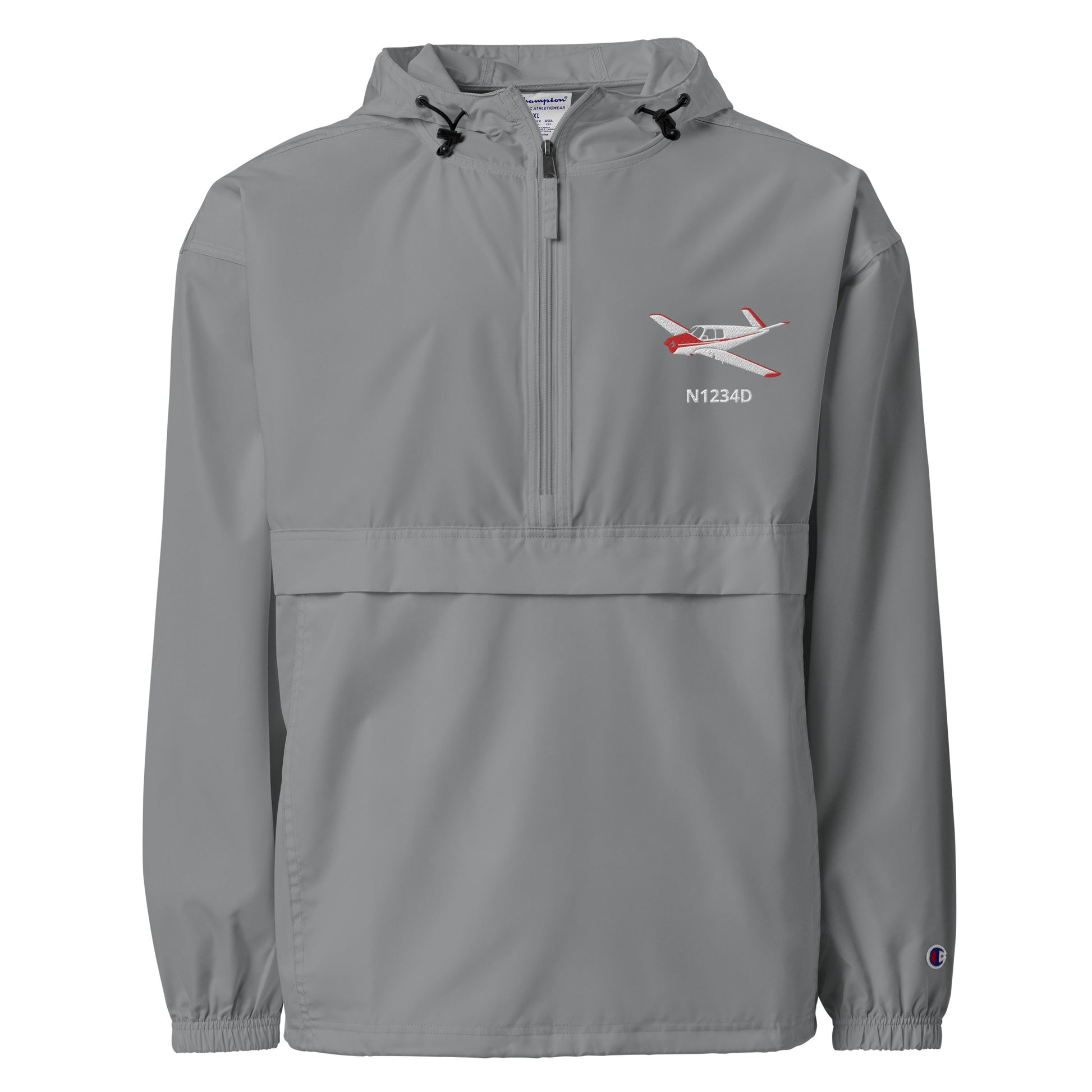 V Tail BONANZA White Red CUSTOM N Number Aviation Rain weather proof Embroidered Champion Packable Zip Jacket
