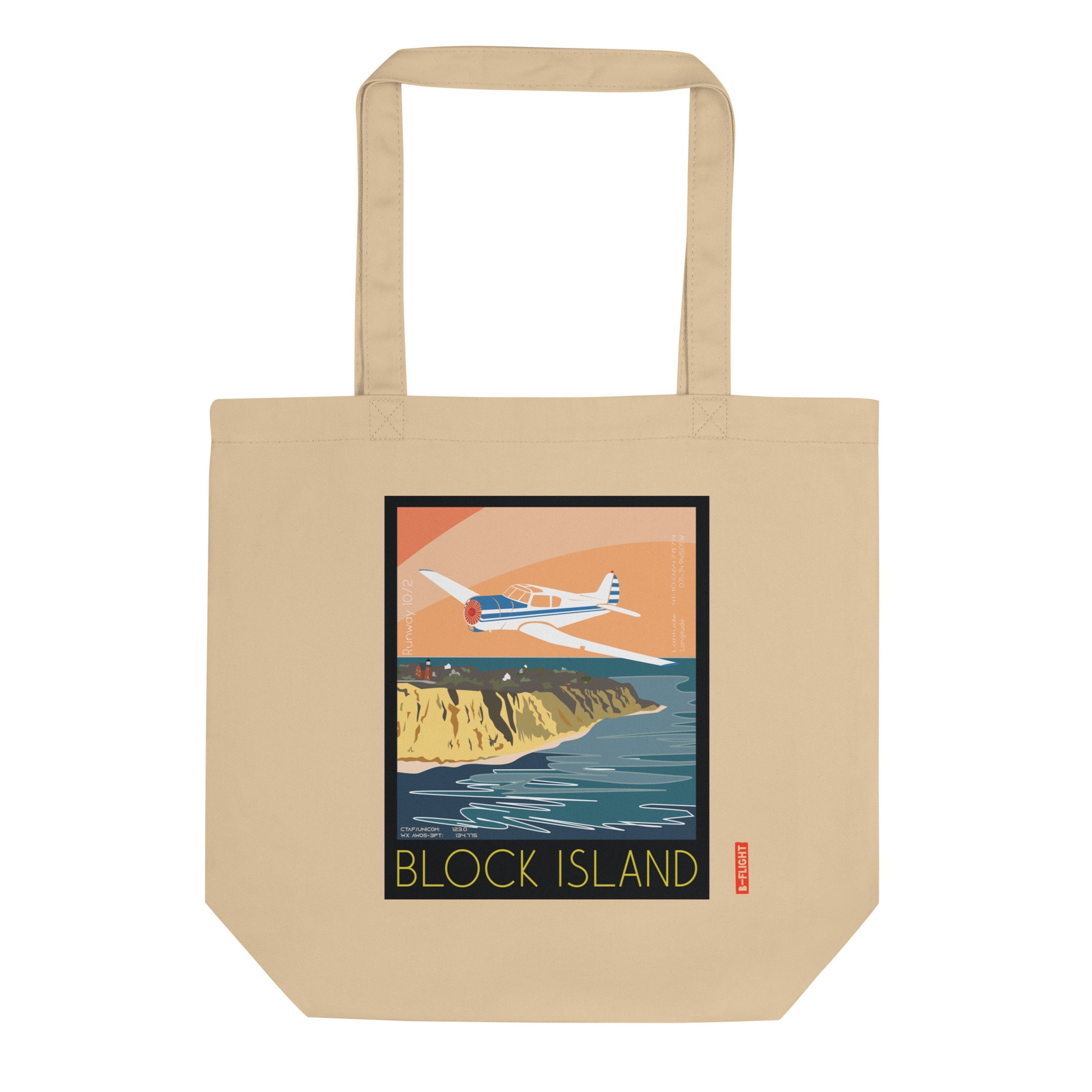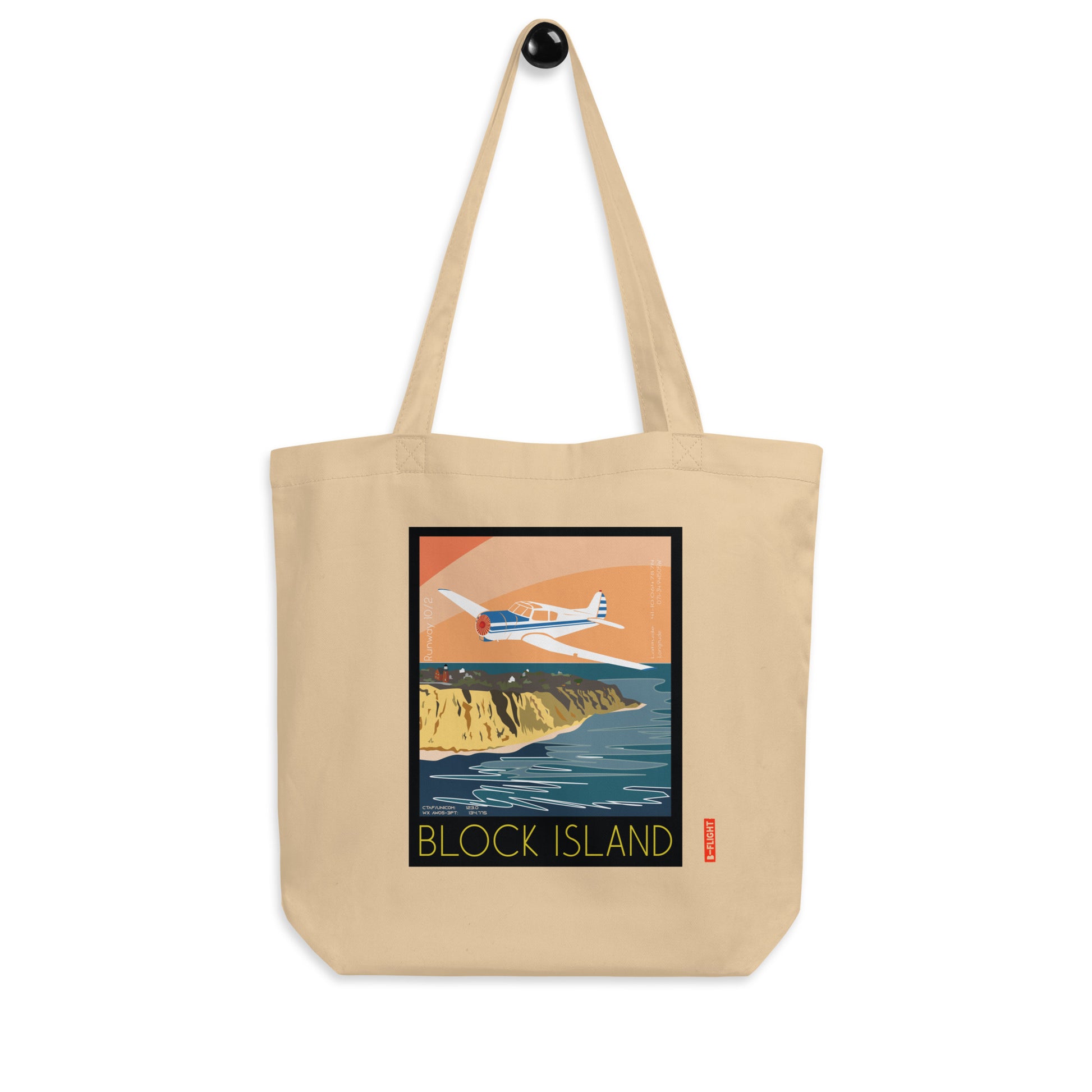 YAK 18T Aviation Eco Organic cotton Tote Bag - Vintage style graphic Block Island airport BID, RI