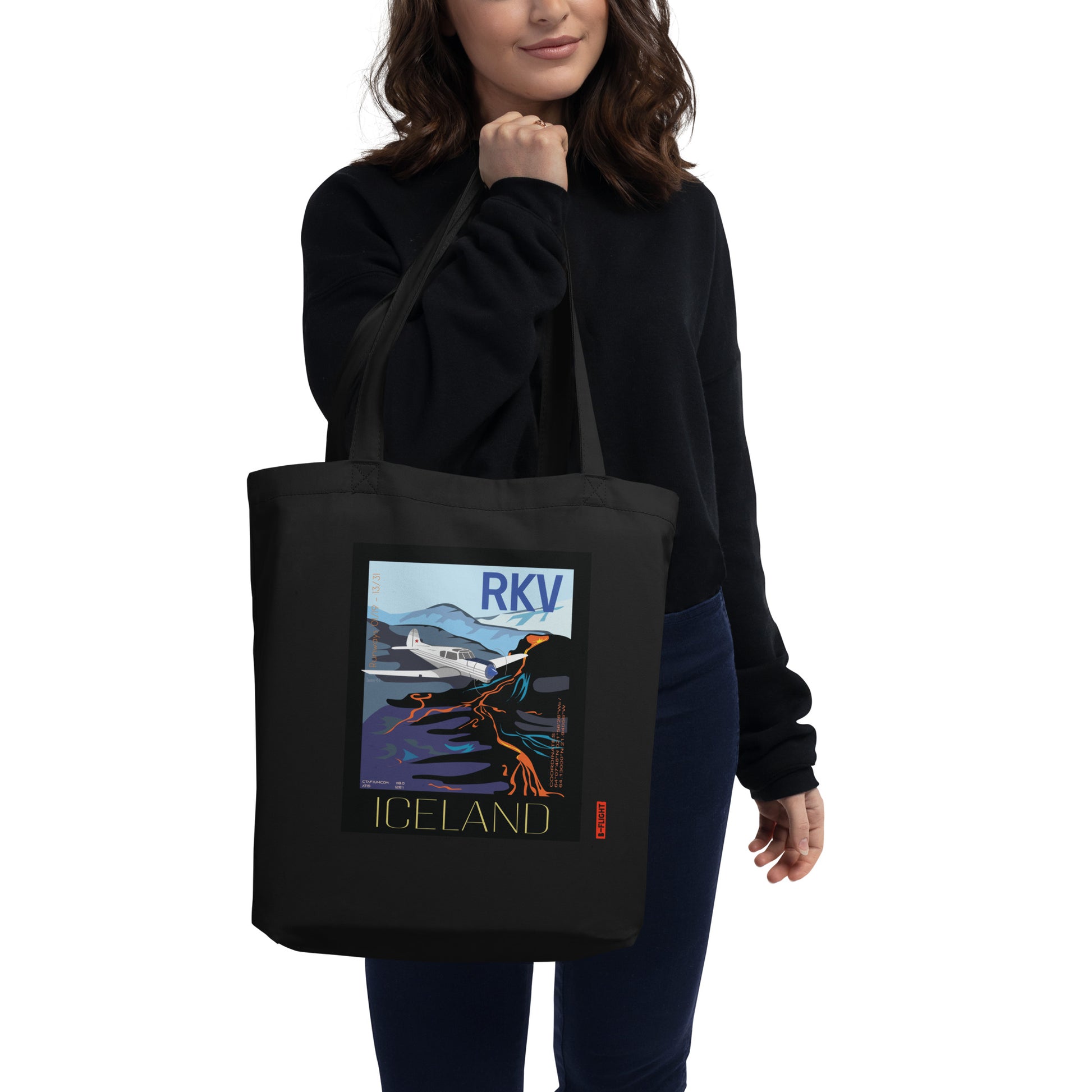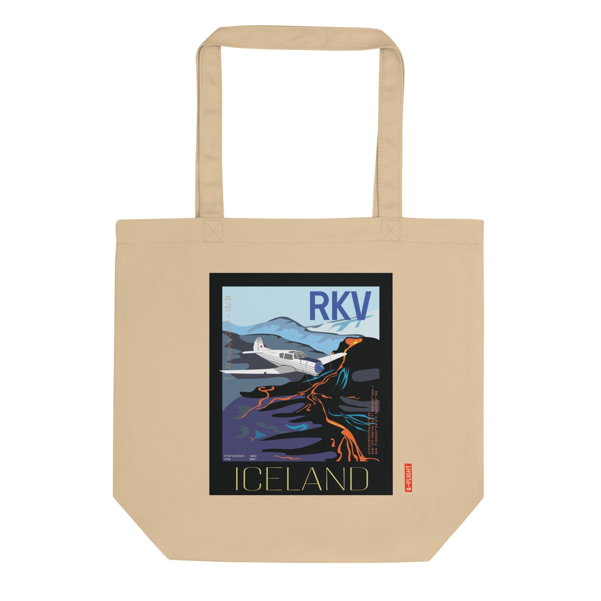 YAK 18T Aviation Eco Organic cotton Tote Bag - Vintage style graphic Iceland airport RKV